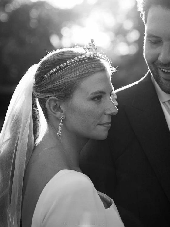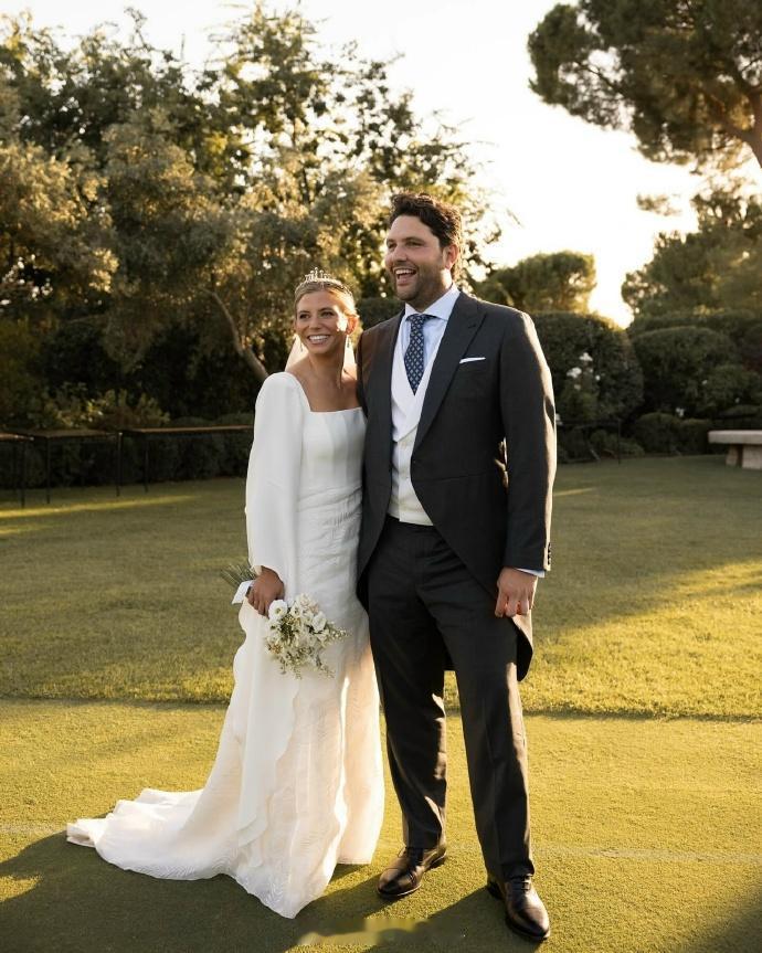 属于西班牙阿布兰特斯公爵(&其他6个头衔)何塞·曼努埃尔·苏莱塔的钻石王冠,通稿资料说这王冠最早的主人是何塞亲妈,在他们家族基本为婚礼专用。何塞亲妈、老婆以及仨闺女安娜、布兰卡和玛利亚结婚都用这一顶 长得略显奇怪和突兀,像糖块看着单薄,细看吧钻也不算小,设计真看不懂,拉远看全身氛围感搭救吧= = 顺带一提,作为老牌贵族,何塞为西班牙王室服务多年,2007年起职务为阿斯图里亚斯亲王秘书处负责人,主要为当时的王储妃以及后来的王后莱蒂齐亚服务。前甲方没有参加过他闺女的婚礼
