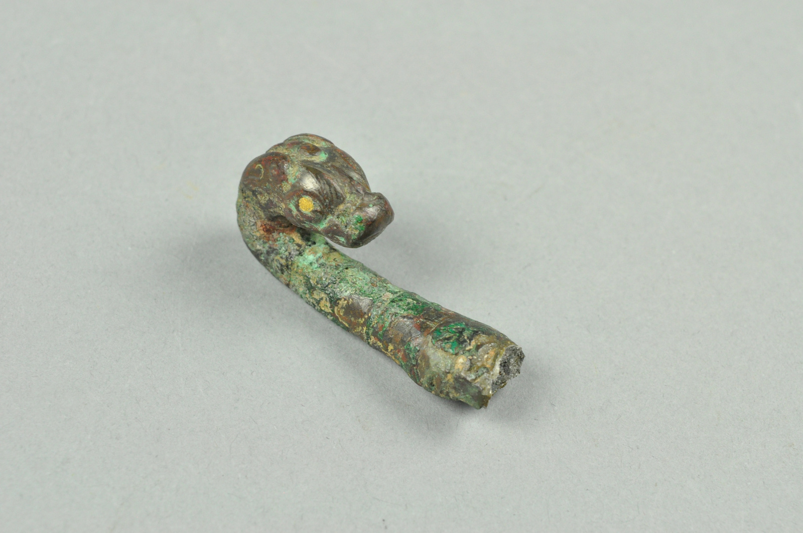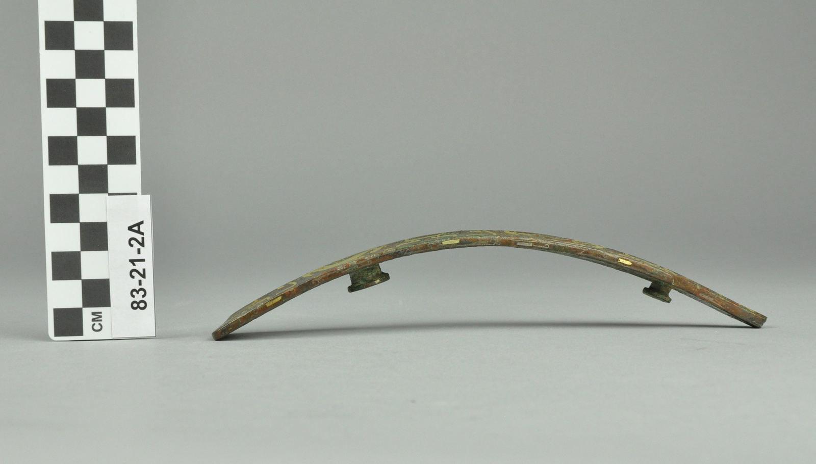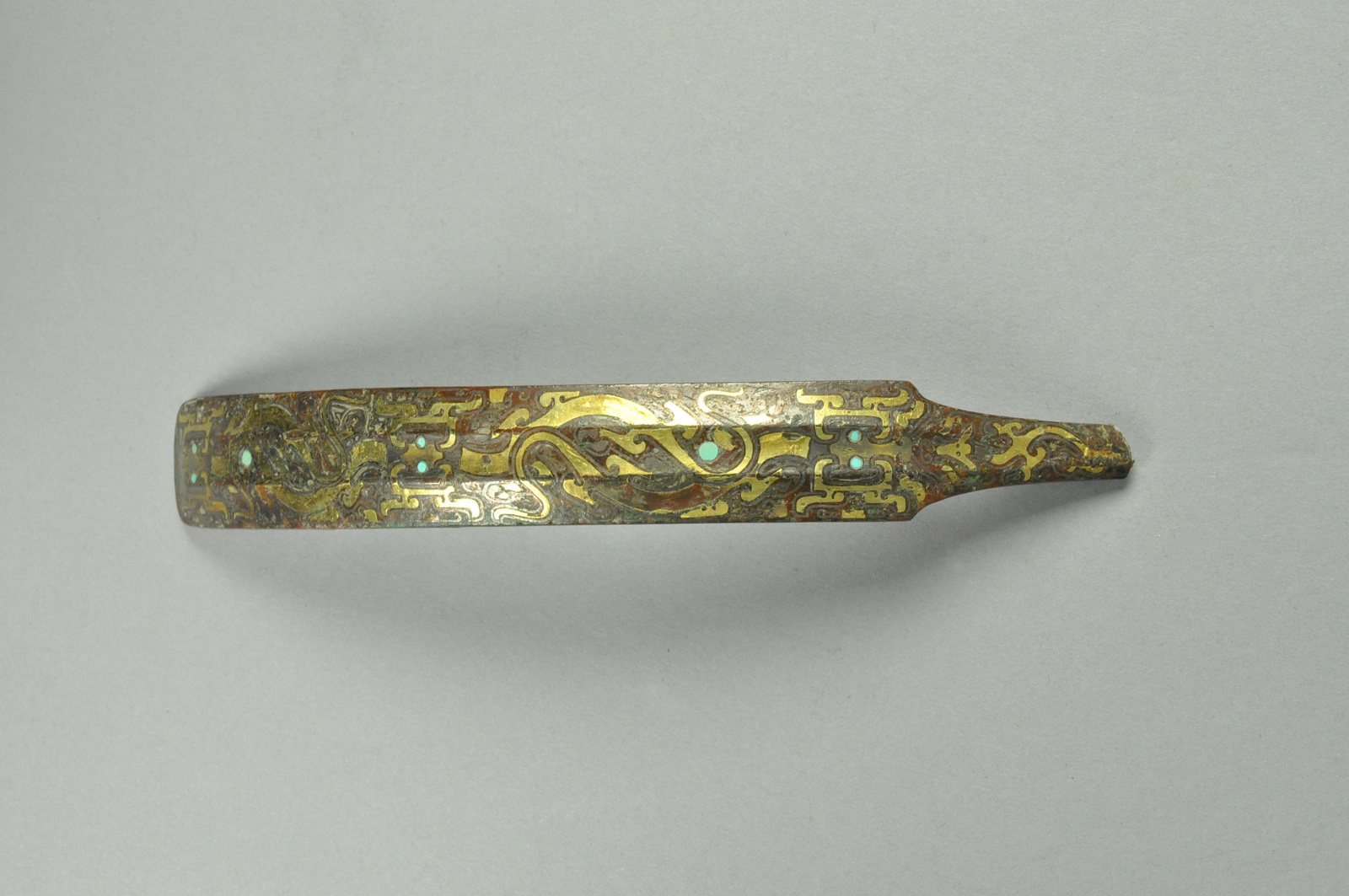 每天一件青铜器 宾夕法尼亚大学考古和人类学博物馆藏战国:错金嵌绿松石带钩. 原本是断掉的, 图1是修复后的状态