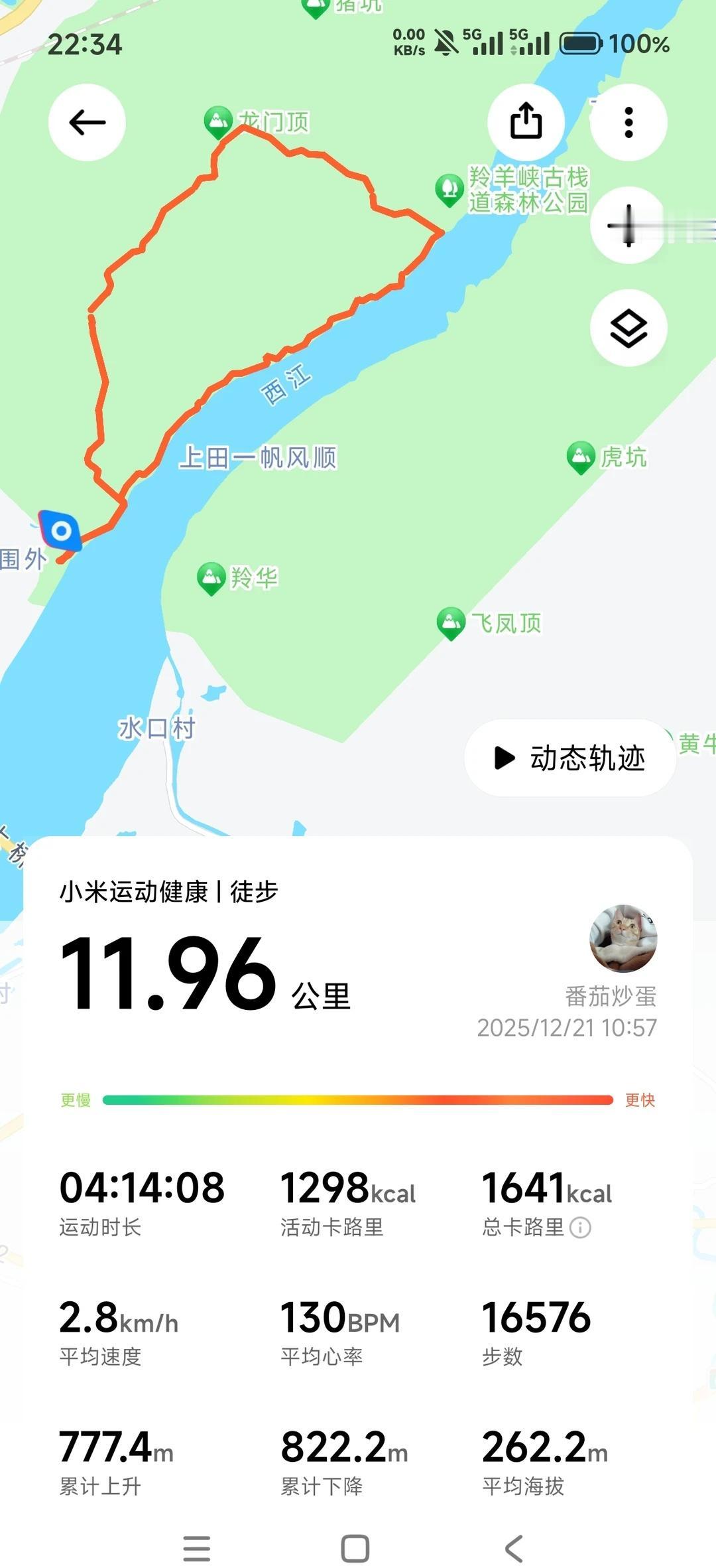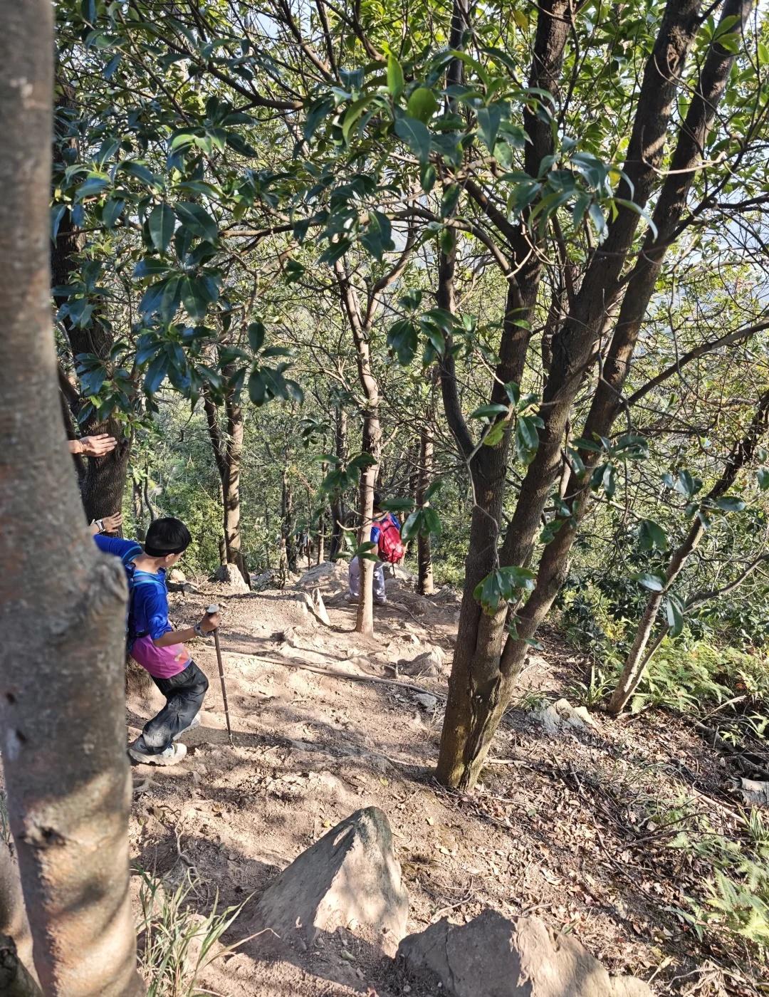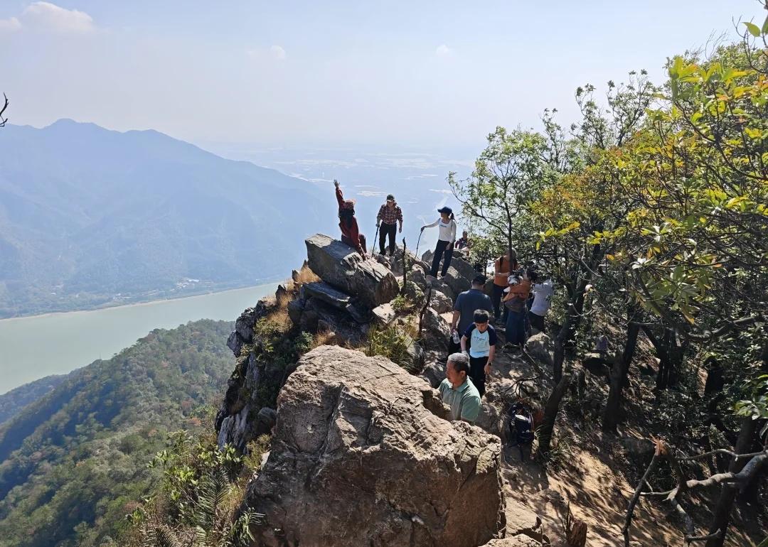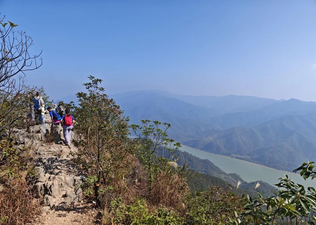 肇庆羚羊峡 广东版小三峡,西江在两山之间穿过,站在山上观看江面来往的船只,远处连绵起伏的山恋,让人流连忘返的美景。导航羚山涌入口停车场,车位挺多的,还免费停车。 物品准备:登山鞋、登山杖、根据天气状况选择防晒衣或冲锋衣,3瓶水以上(全程无补给,只有入口处有个小便利店),帽子,充饥食物 徒步体验:这次走的是羚羊峡古道小环线,全程12公里左右,爬升近800米。停好车往羚羊峡古道牌坊走,沿着江边栈道走几分钟,然后左转野路上山。进山后一直都是在爬升,有些坡度较陡,部分泥土坡较滑,而且没有遮挡,太阳暴晒流汗较多,夏天不建议来。大概半个小时到山脊线,可以休息一下。龙门顶之前的路都是一路爬升的,但没有刚上山的那段路陡,很少有下坡。山上的风景很美,好几处适合拍照打卡的,需注意安全。龙门顶是轨迹海拔最高点,然后是一路下坡,有些坡还比较陡。这个路线的特点很明显,爬升—下降—栈道。整体来说,难度不大,风景不错,值得推荐。如果带孩子的话,不太建议。一开始的爬坡是最难的,遇到有个孩子哭着要回家,还是逛逛江边的古道好了。徒步丈量世界