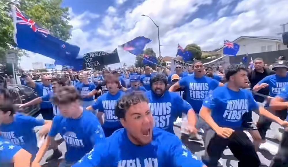 看了一个新西兰的视频,一个新西兰当地团体举着标语,在街头跳战舞,标语上赫然写着“这里是新西兰,不是印度!” 很显然,他们这次游行的目的是反对印度移民。 而一些印度人则在马路另一头,隔着警方与他们对峙。 一些自媒体有点过度解读,实际上并不是整个新西兰社会反对印度移民,新西兰也不敢这样做,因为他们要保持自己的包容性,和文化多元性。 这只是个别组织的行为,里面不乏拉选票的意味。