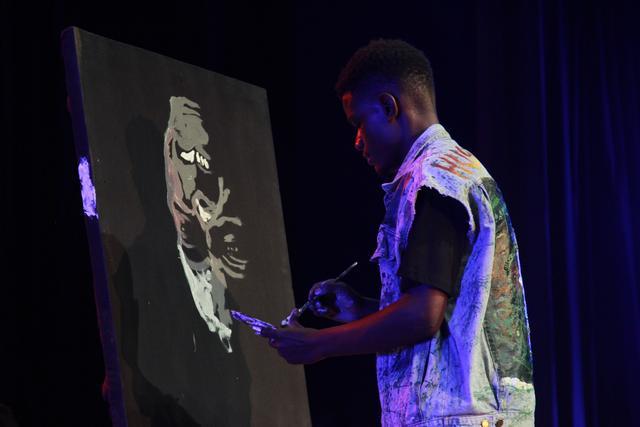 12月5日,一名选手在津巴布韦首都哈拉雷举行的第九届津巴布韦“梦想秀”决赛上现场作画。新华社发(塔法拉摄)