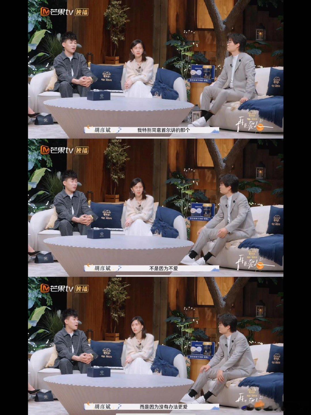 胡彦斌回应再见爱人嘴替 胡彦斌在节目里真的太会总结了,能把剪不断理还乱的纠葛一句话概括。他这种化繁为简的能力真的太强了,每次听他发言都觉得茅塞顿开!