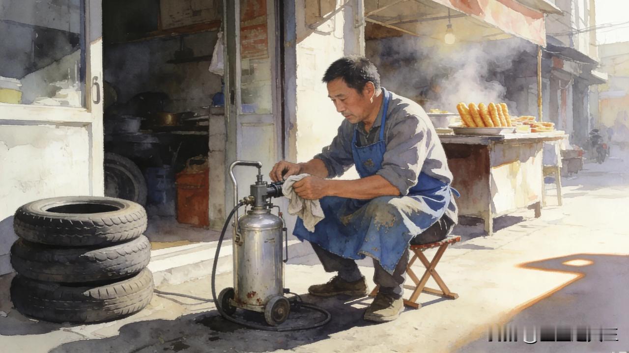 街角的修车铺 清晨的风裹着油条香掠过巷口,老王的修车铺又吱呀一声开了门。褪色的蓝围裙往肩上一搭,他蹲在马扎上,慢悠悠擦拭着那台半旧的打气泵。 铺子不大,墙根堆着各色轮胎,扳手螺丝刀挂了一墙,油渍浸得木架发亮。老王不爱说话,手上功夫却地道。自行车链条卡壳,他捏着飞轮轻轻一转,找准症结,三两下就修好;电动车胎漏气,他拿肥皂水一抹,气泡滋滋冒处便是破洞,补胎、打气,全程不过十分钟。 常有年轻人嫌他手慢,宁愿去街那头的连锁店。老王也不恼,照旧慢悠悠干活。有回放学,我的车链子断在半路,哭丧着脸找他。他没吭声,从抽屉摸出截新链条,蹲在地上帮我接好,又免费调了刹车。夕阳落在他花白的头发上,影子拉得老长。 如今巷口高楼越建越多,修车铺却还守在原地。路过时总看见老王坐在马扎上,要么修车子,要么望着街头发呆。他守的不只是一间铺子,更是这老街里,渐渐被人遗忘的慢时光。 这市井烟火里的坚守,像一颗埋在泥土里的老种子,不起眼,却透着一股子让人安心的韧劲儿。 大家喜欢这样的市井烟火气吗?