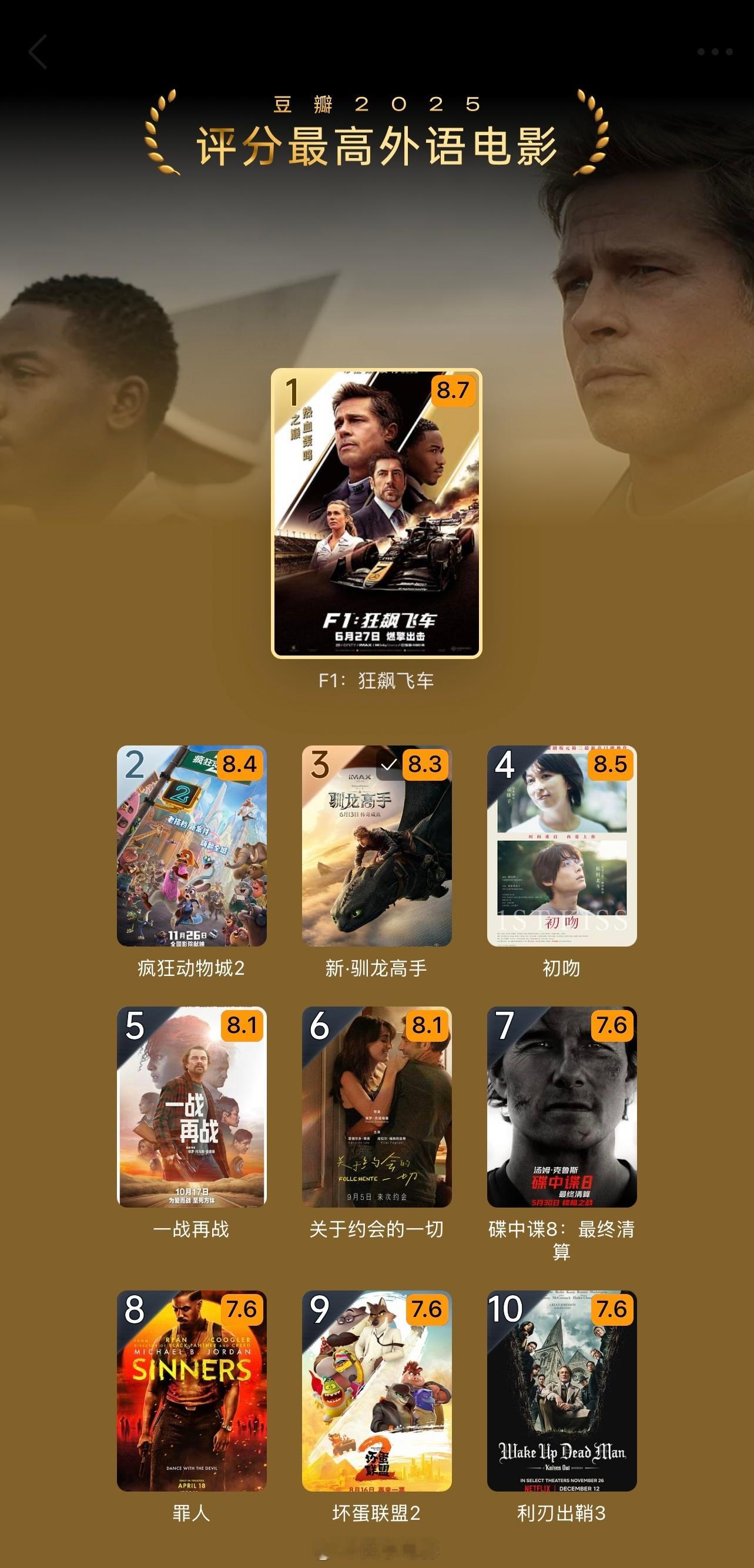 豆瓣年度榜单挺尴尬的,一年新上那么多华语电影,竟然凑不齐一个top10评分阵容!