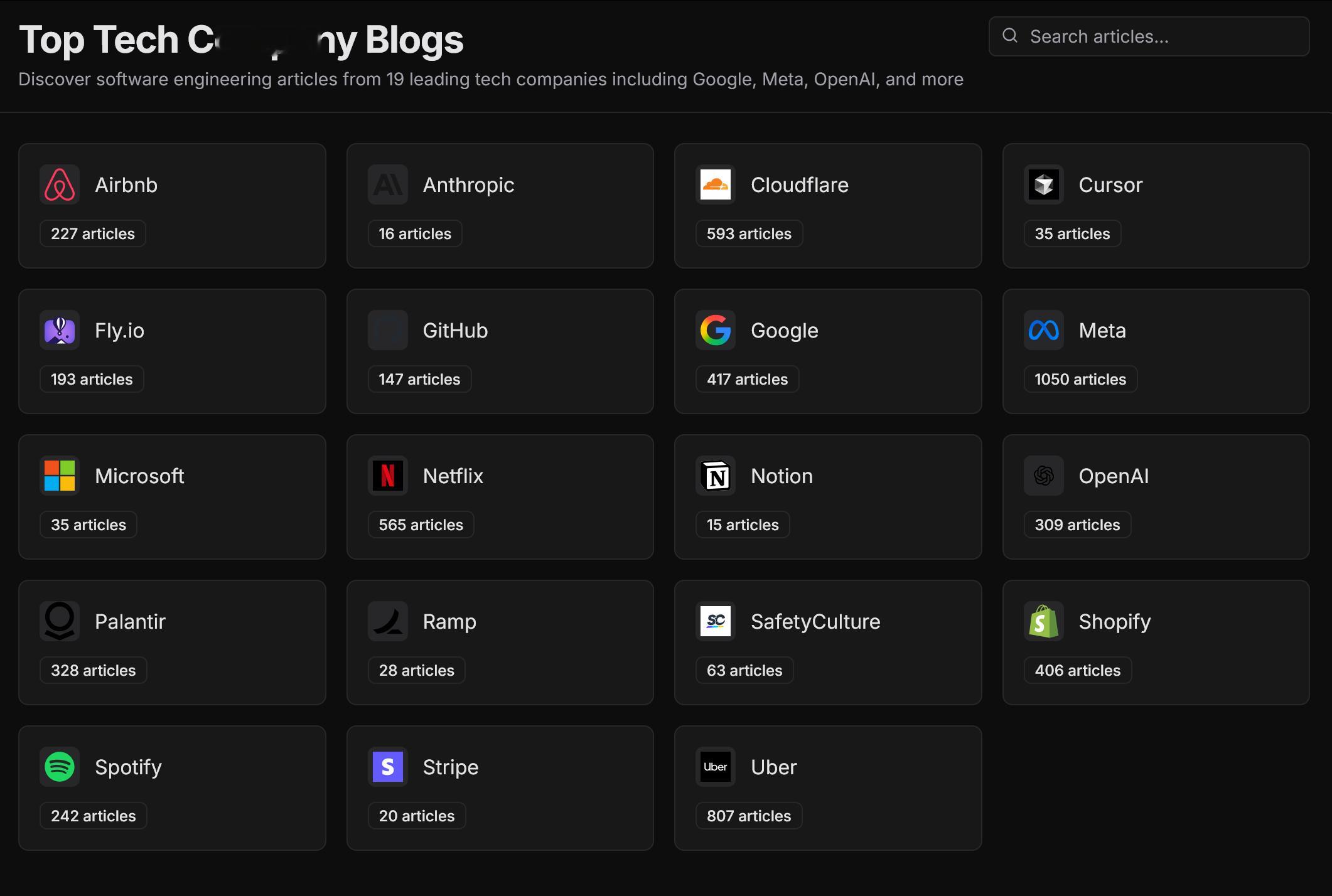 engineering.fyi/这个网站聚合了来自各顶尖科技公司的工程博客文章,