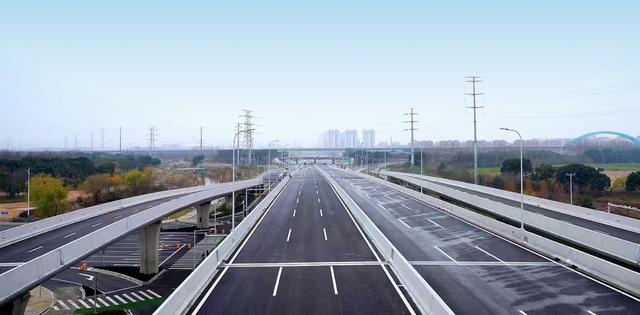 龙江路高架北延项目南起科勒路,北至东海路,全长约9.3公里,一般断面为“高架6车道+地面6车道”,高架设计时速80公里/小时,全线在辽河路、嫩江路、浏阳河路、S122、赣江路等5个交叉口共设置7对上下匝道和1对地面出入口。