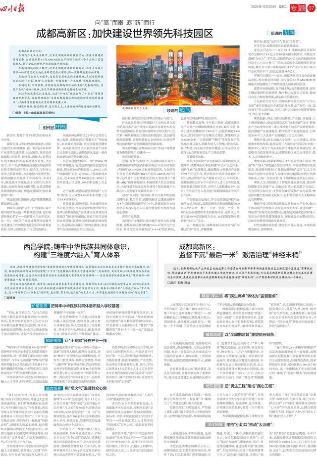 2025年进度条已拉至尾端。站在“十四五”收官在即、“十五五”序幕将启的重要节点,成都明确提出“支持成都高新区加快建设世界领先科技园区”,以高质量发展新成效更好服务发展大局。