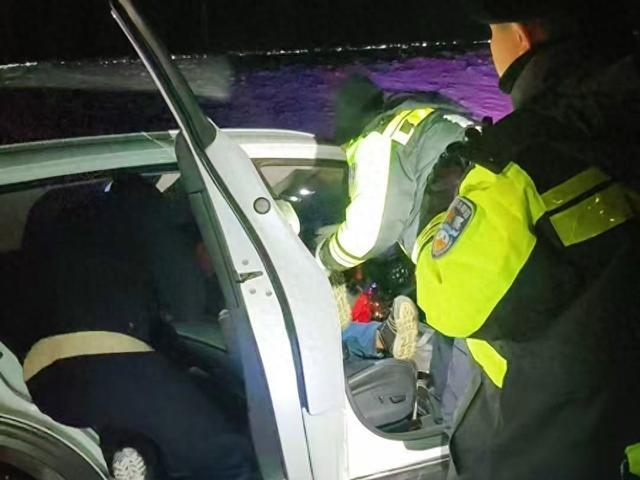 民辅警滑下沟底,经过不懈努力,十分钟后成功将被困人员从车内救出。随后,民辅警主动帮助联系拖车公司将车辆送至维修厂检修,并用警车将游客接回派出所安置。抵达白银纳派出所后,值班辅警递出早已准备好的热水和蛋糕。“温度达到零下36℃,手机冻得即将关机,还好有人民警察帮忙,不然真的不知道该怎么办了”被救助群众感激地说。