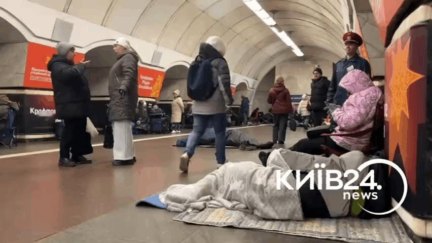 🚇💔🇺🇦乌克兰首都地铁爆满:人们带着动物,甚至搭起帐篷,躲避俄罗斯导弹和无人机的袭击,等待末日的到来…… 这种情况已经持续好几个小时了……