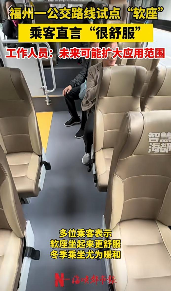 福州一公交路线试点“软座” ,乘客直言“很舒服”。工作人员表示,未来可能扩大应用范围。 福州身边事