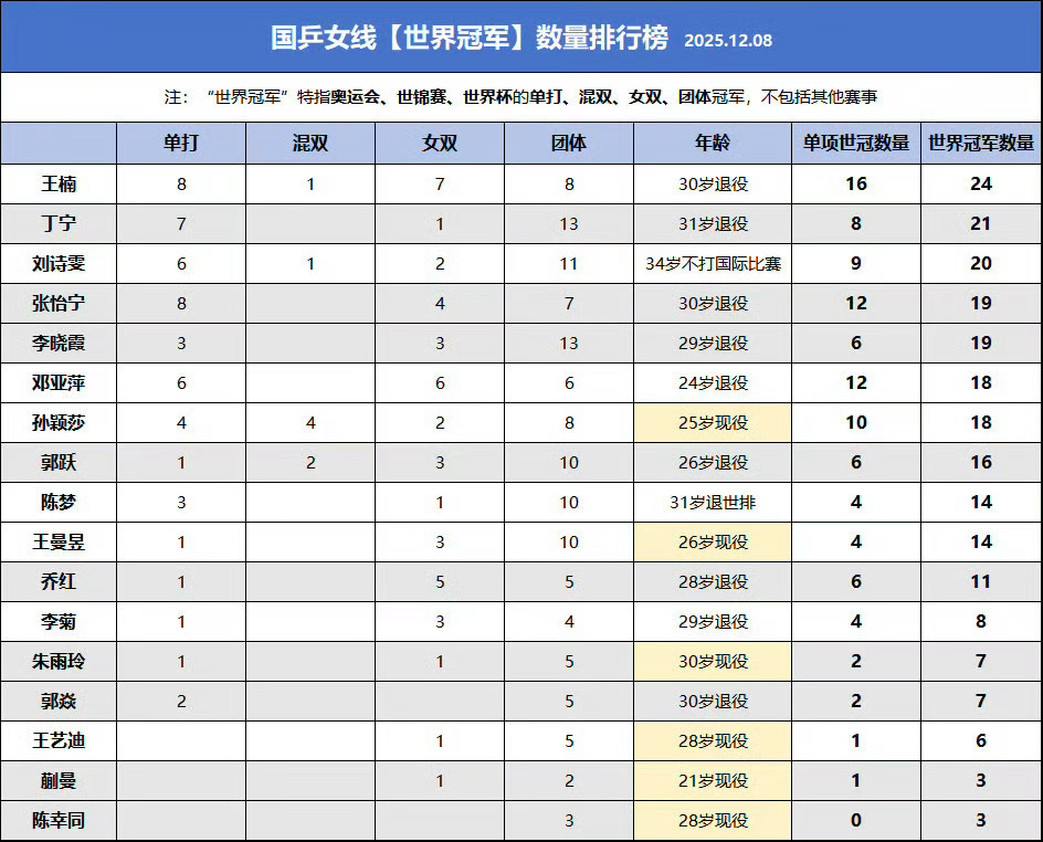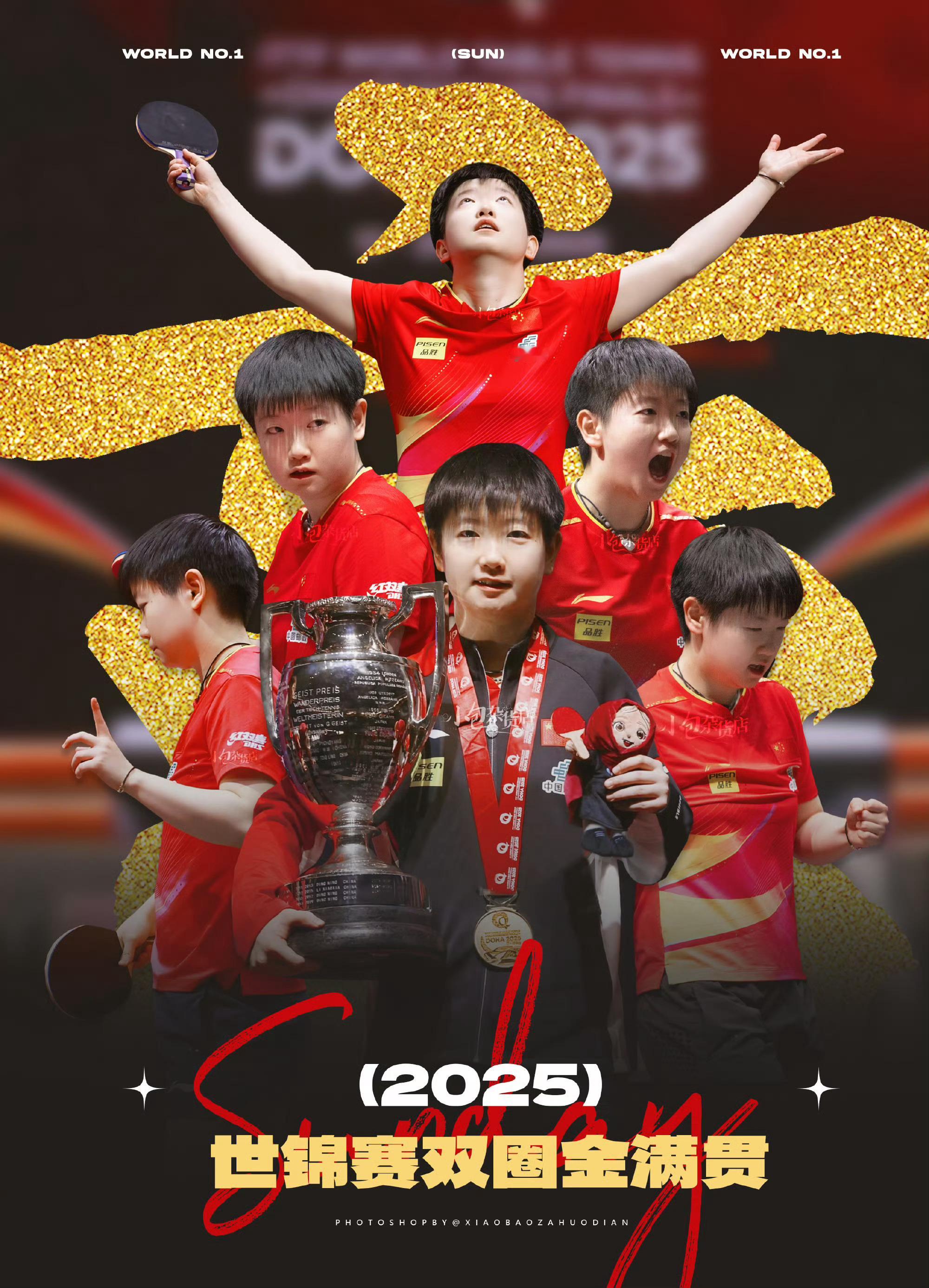 段翔说孙颖莎王曼昱水平差不多 看看孙颖莎的实绩!太强了!是女乒历史首位且唯一一位双圈金满贯,三大赛单打四金王!
