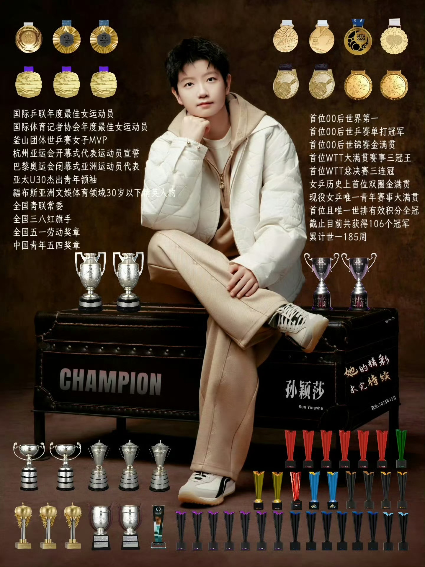 段翔说孙颖莎王曼昱水平差不多 看看孙颖莎的实绩!太强了!是女乒历史首位且唯一一位