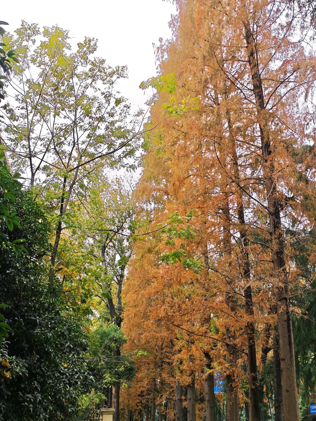 ③落羽杉:逐步进入观赏期,落羽杉现在已经大部分变红,可以掉叶子