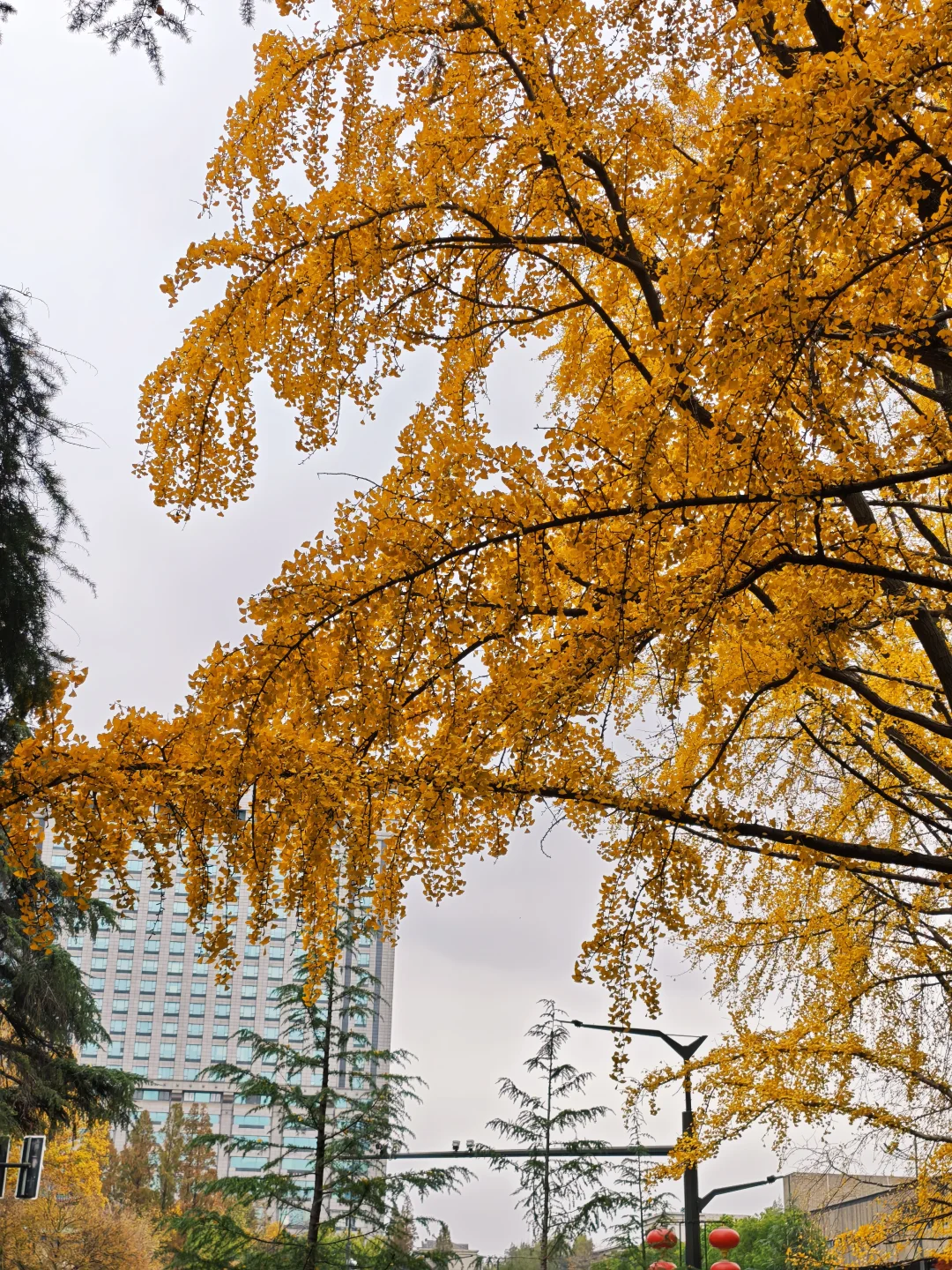 ①银杏:有些已经完全秃了,有些目前完全金黄,这种状态一阵风可能一夜就落光啦,一定要趁早