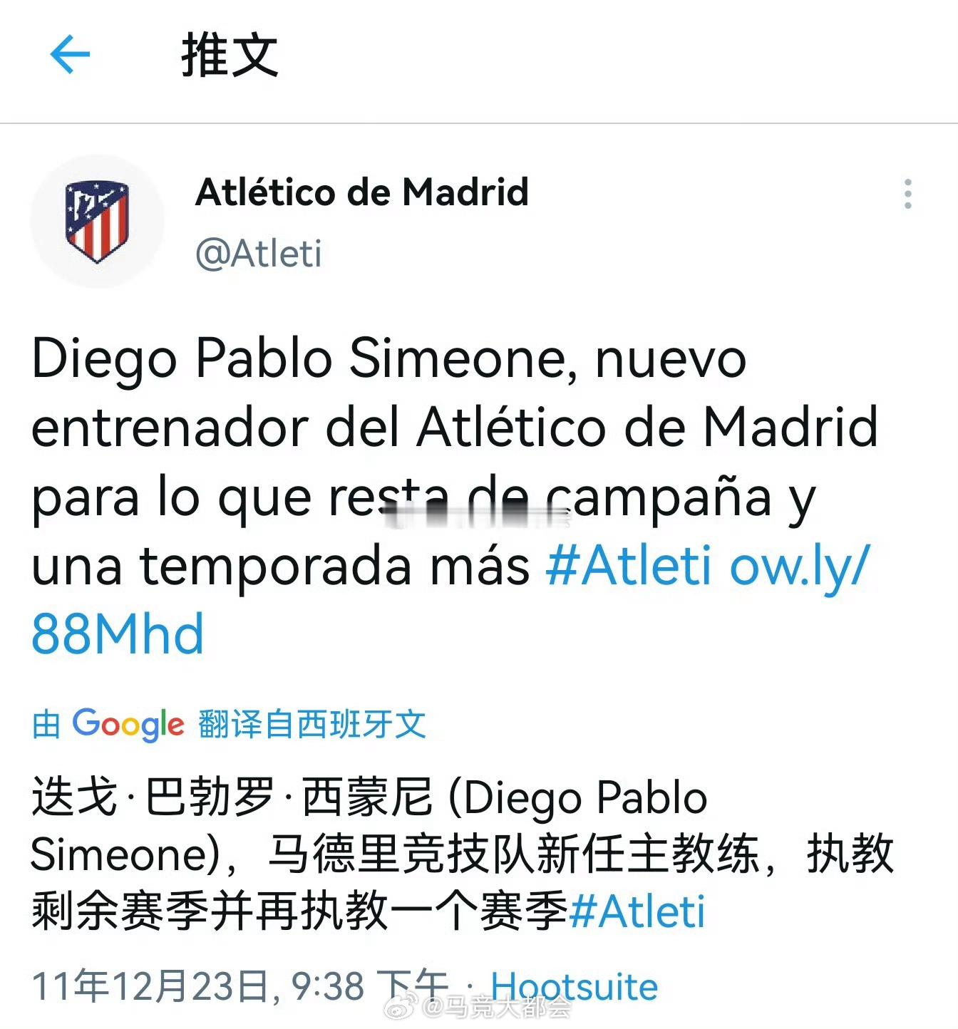 十四年前的今天,马竞传奇球员迭戈-西蒙尼成为马竞的新教练,而如今他已是球队的传奇教练。