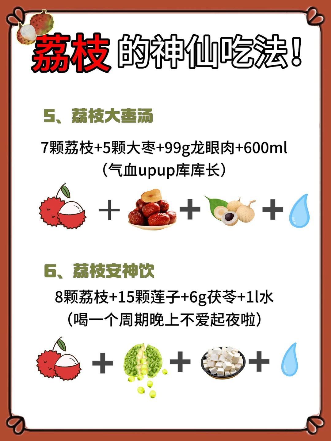 7颗荔枝+5颗大枣+99g龙眼肉+600nl水煮17分钟(气血upup库库长)