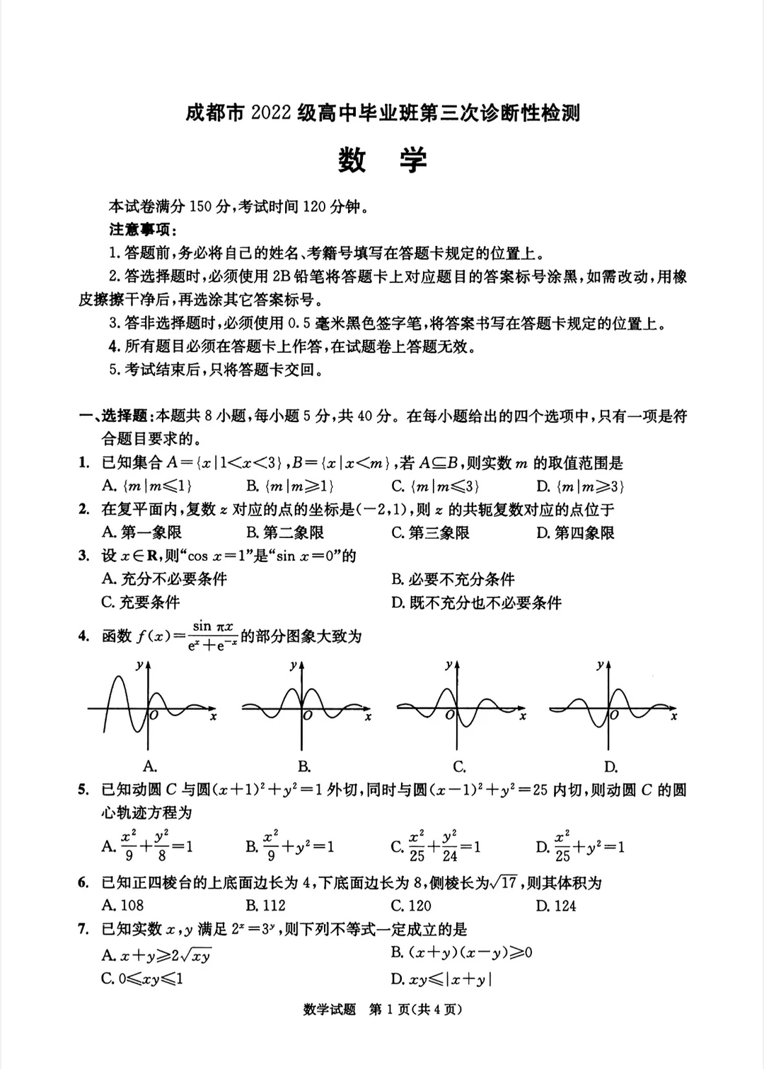 2025成都三诊数学答案&试卷新鲜出炉!