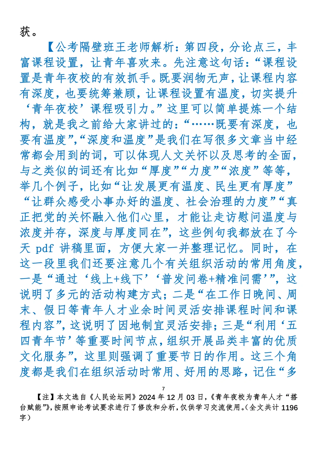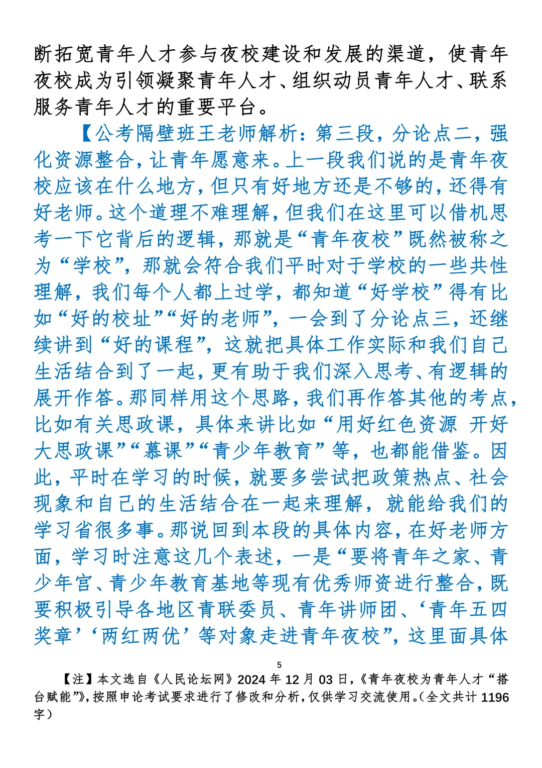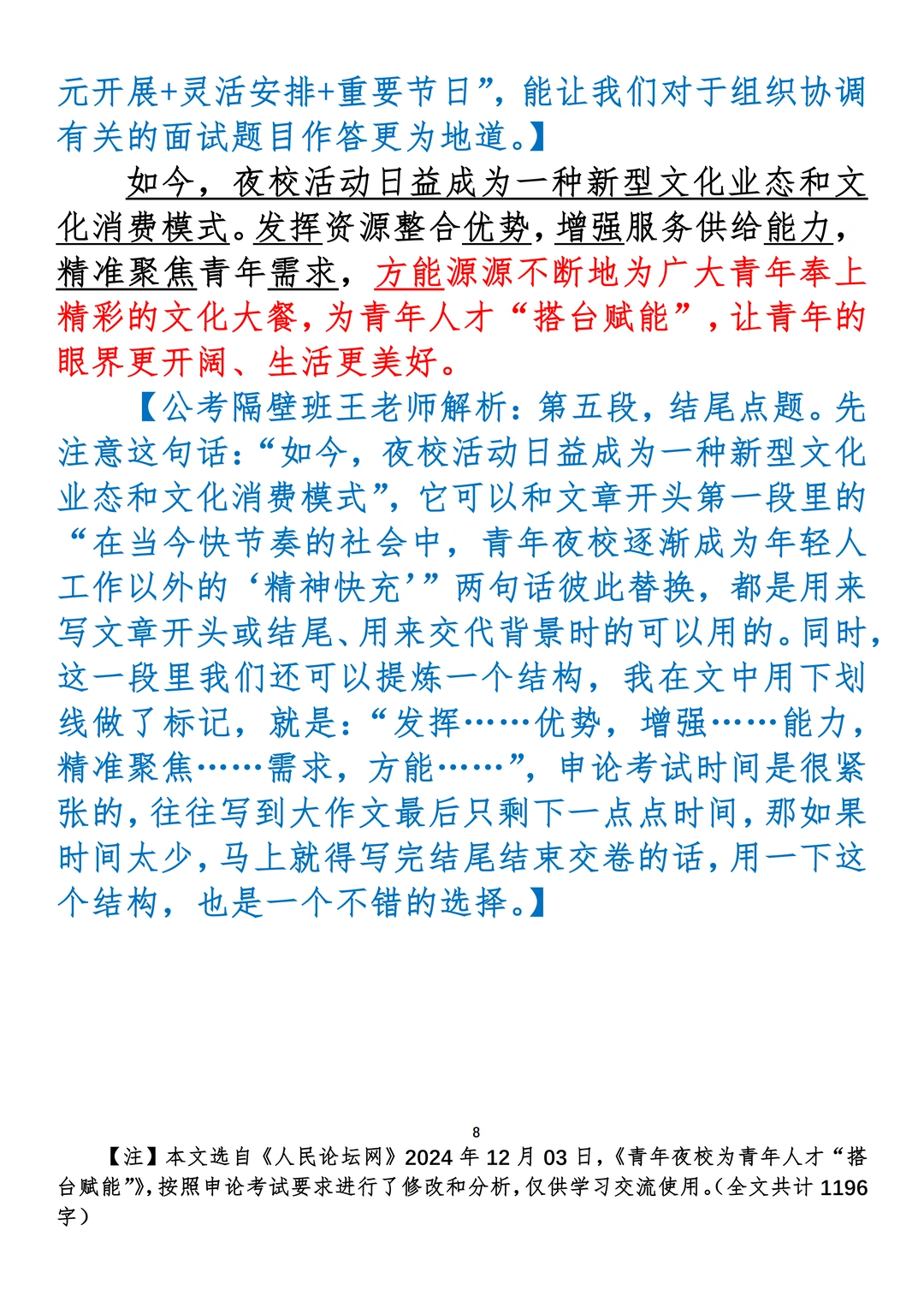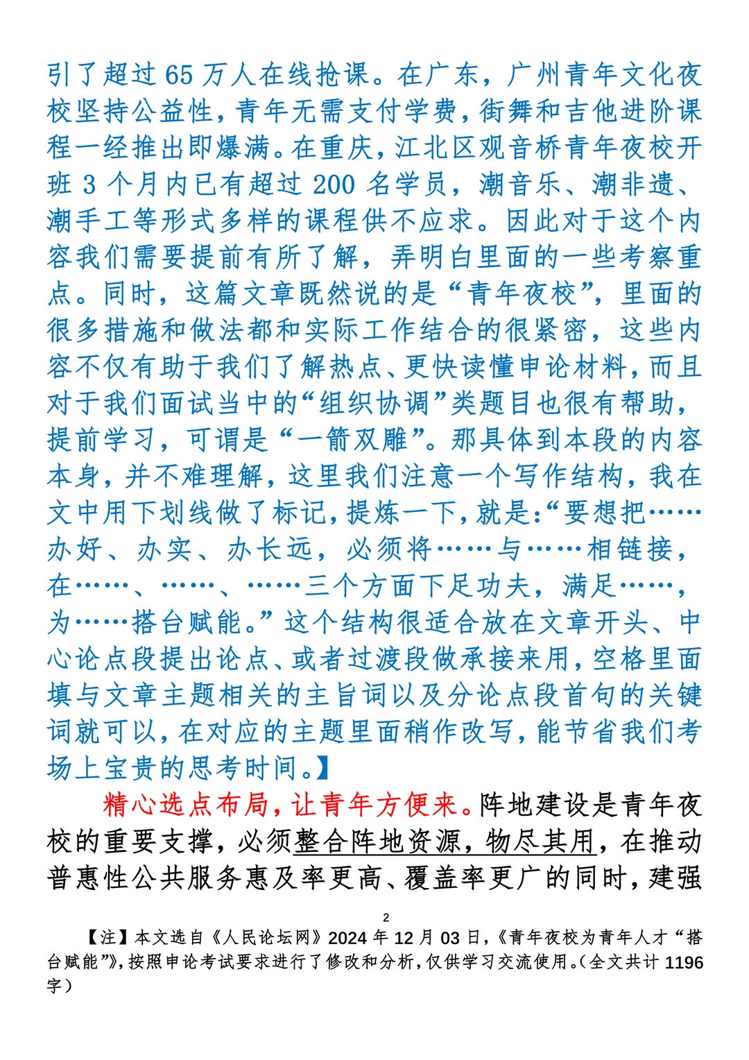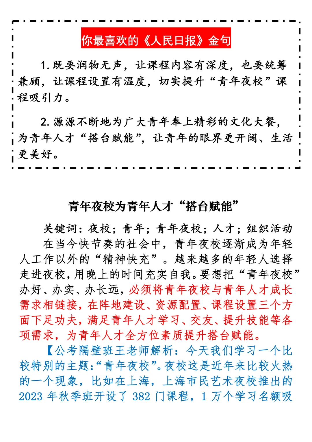 如何抄写:每日抄写文章发在“公考隔壁班王老师”账号,红色字是重点句和结构句,黑色字是正文,蓝色字是解析,大家抄写时不必抄蓝色字。建议先通读全文,做到心中有数再开始抄写,效果会更好。 关于文章:抄写文章来源于人民日报,但每篇文章我都根据申论考试要求进行了修改:一是重写或修改开头、结尾;二是统一段首句句式结构;三是调整段落字数,使文章结构更均衡;四是简化复杂长难句,使之更具可模仿性。每篇文章无论修改多少,都是基于申论考试要求,毫无对人民日报文章品评之意。(此处致敬人民日报)