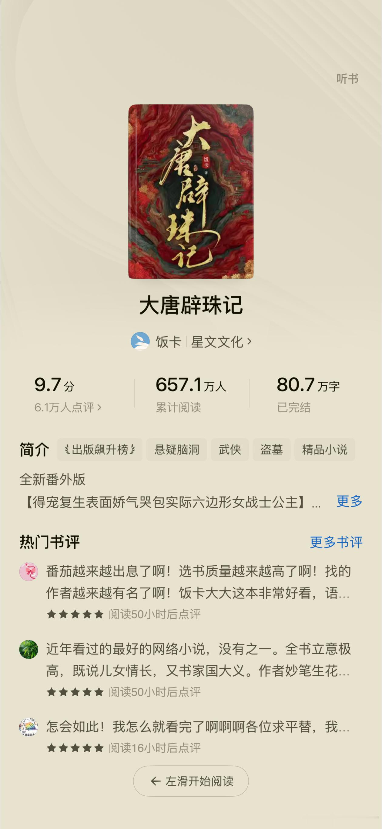 饭卡的《大唐辟珠记》太牛咧,晋江上没有签约数据这么好上了番茄更牛