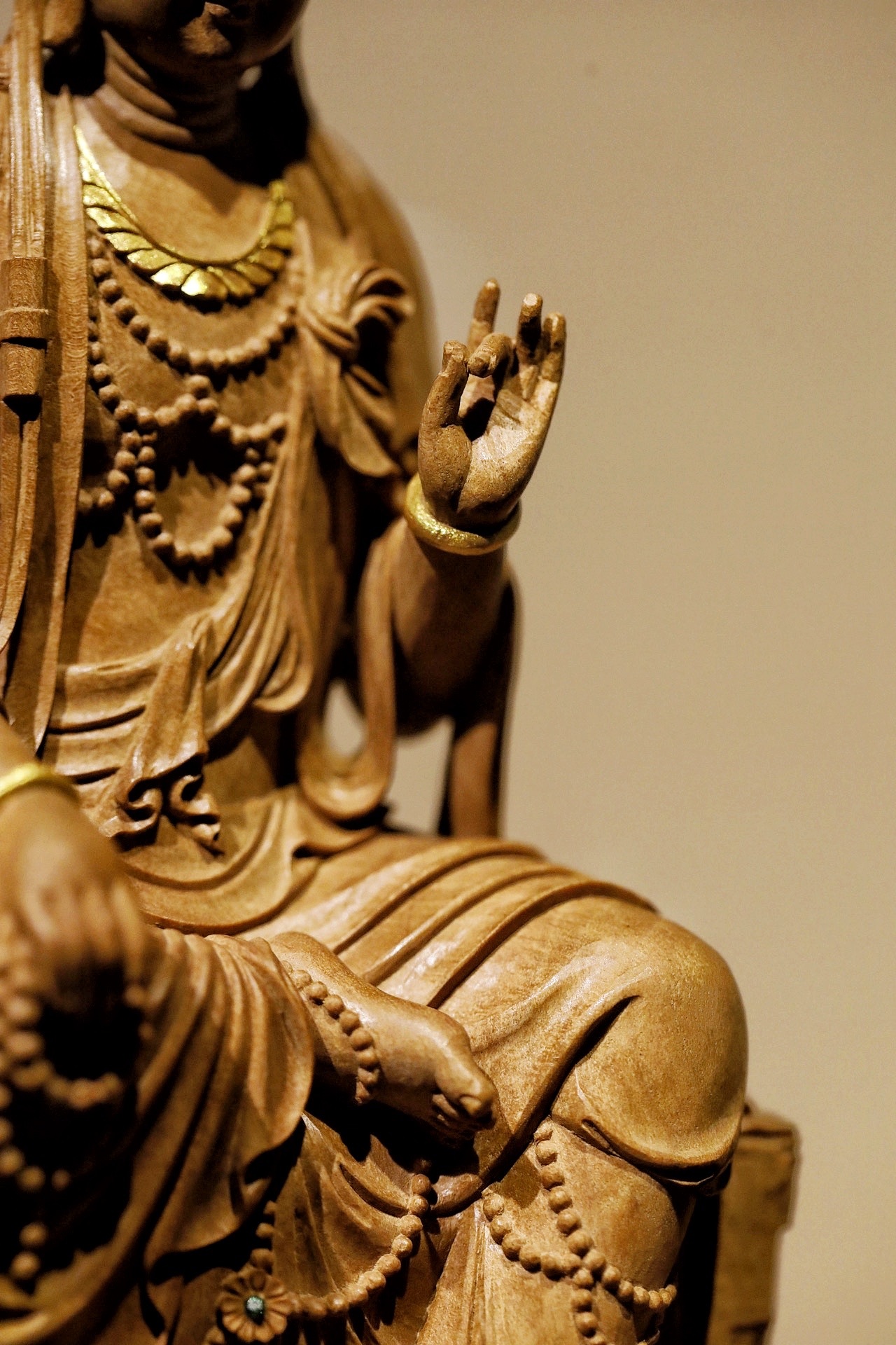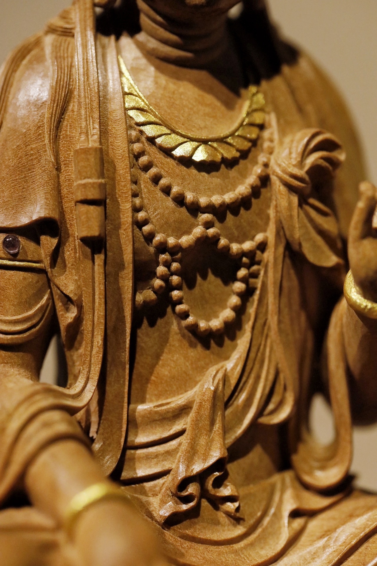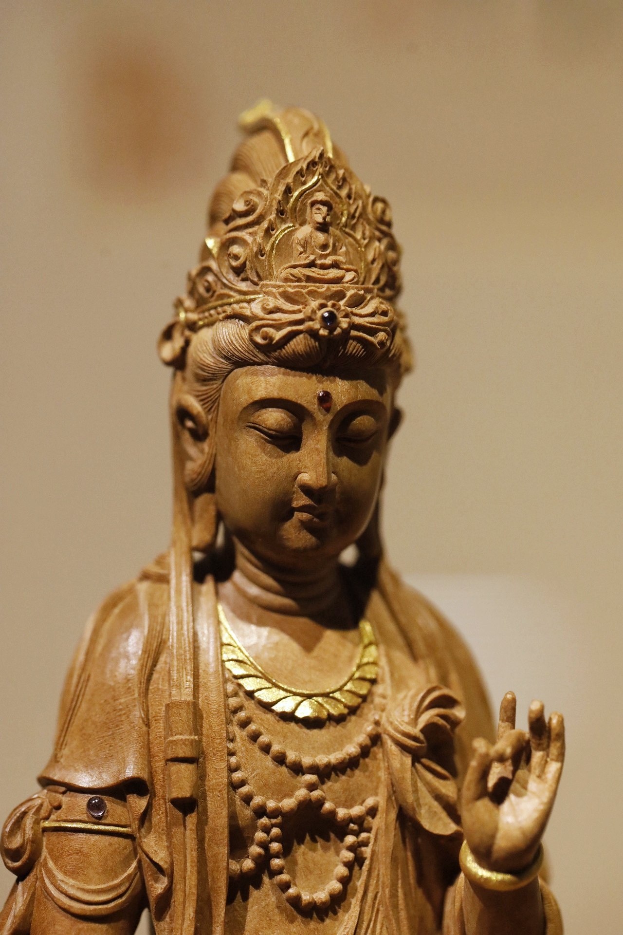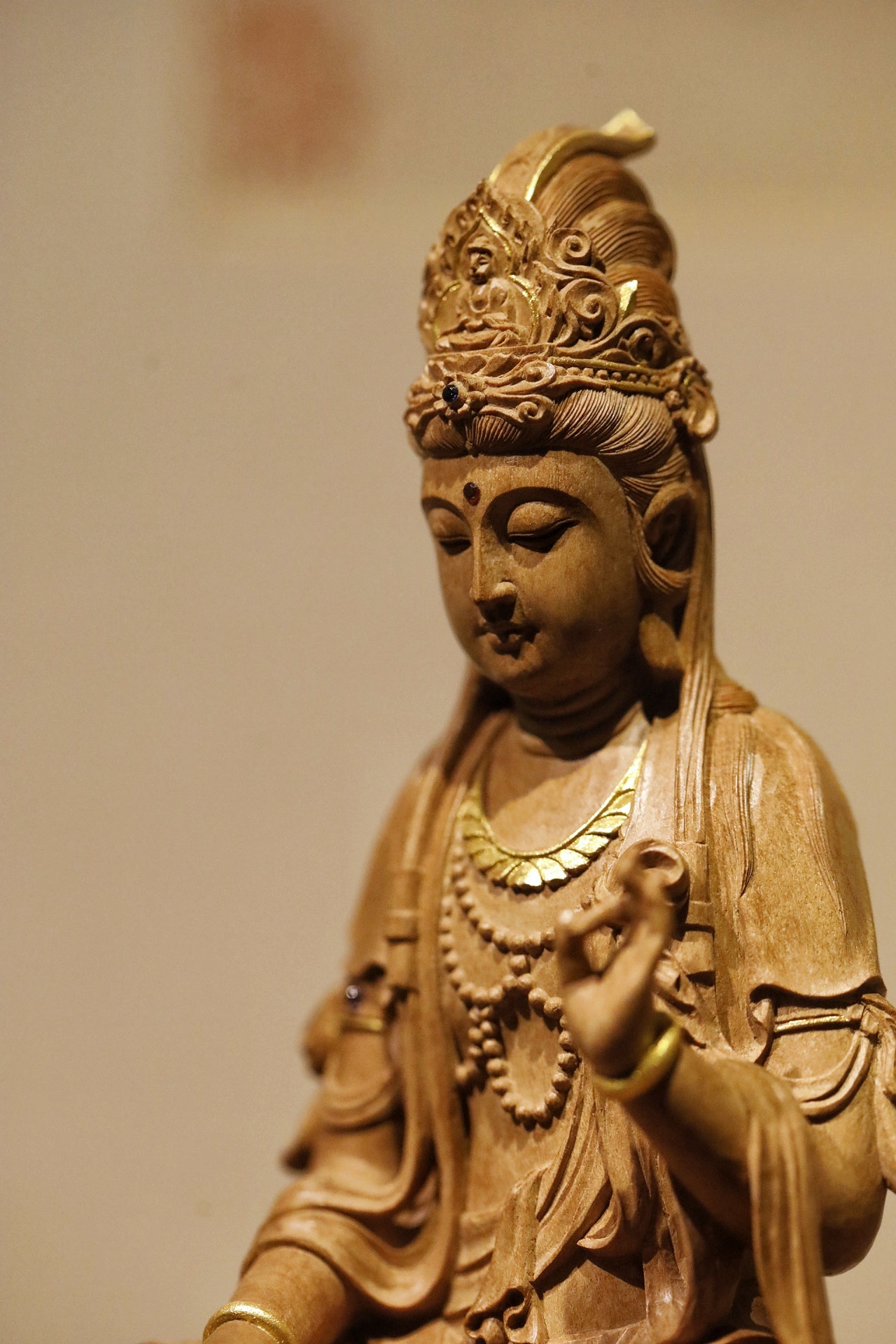 老山檀香|持珠观音·清刀制像取整料成器,雕观音自在趺坐,手持念珠、颔首垂目,面容温婉慈悲,衣袂层叠如流云。木雕细节毕现,璎珞、莲台雕琢精巧,檀香醇厚沁脾,兼具观瞻之美与禅修之韵,为收藏重器。规格:13×10×23cm重量490g底座:19×12×10cm整体高度27cm