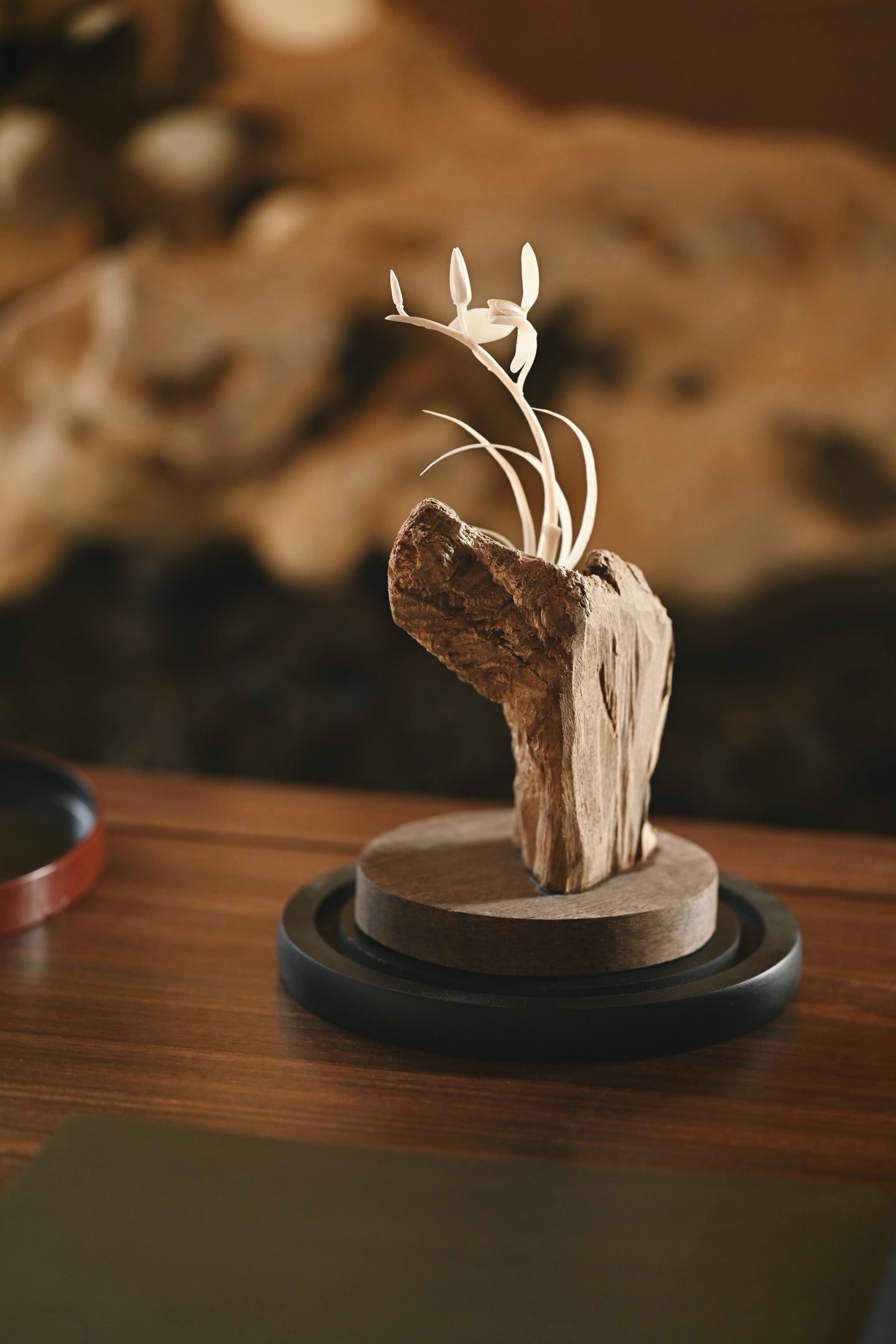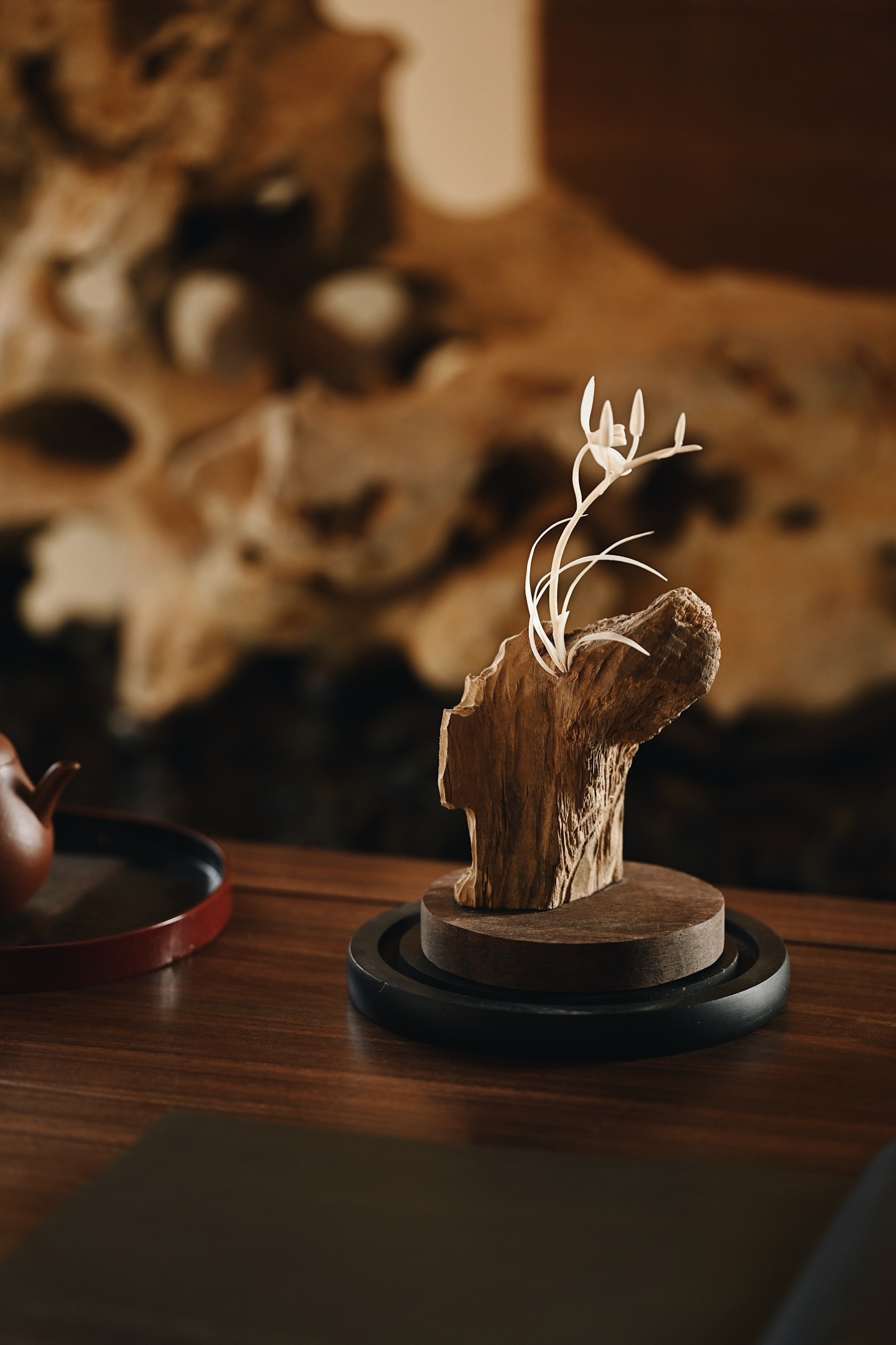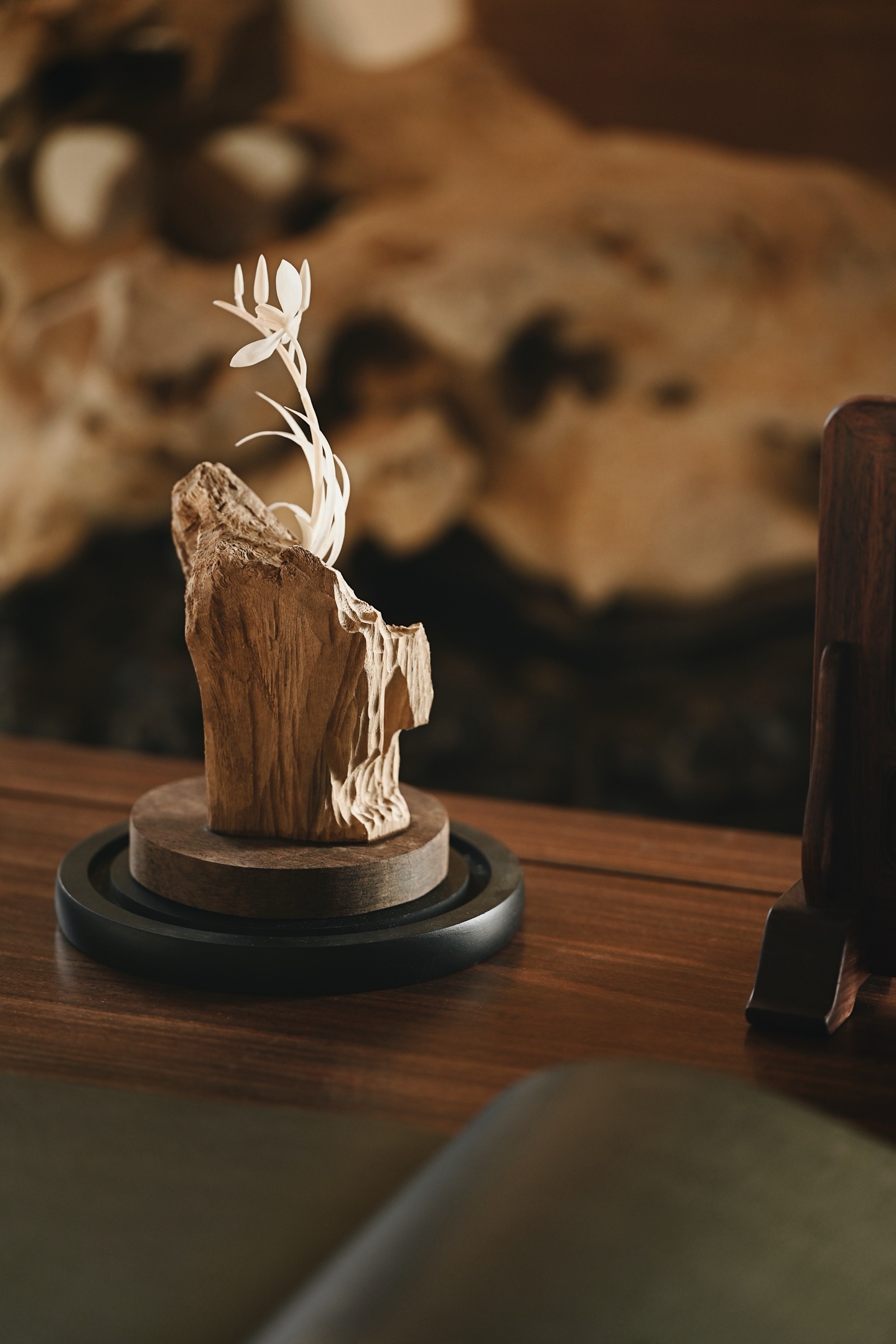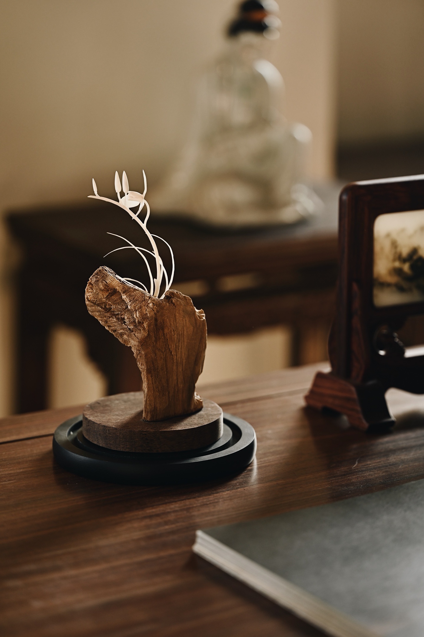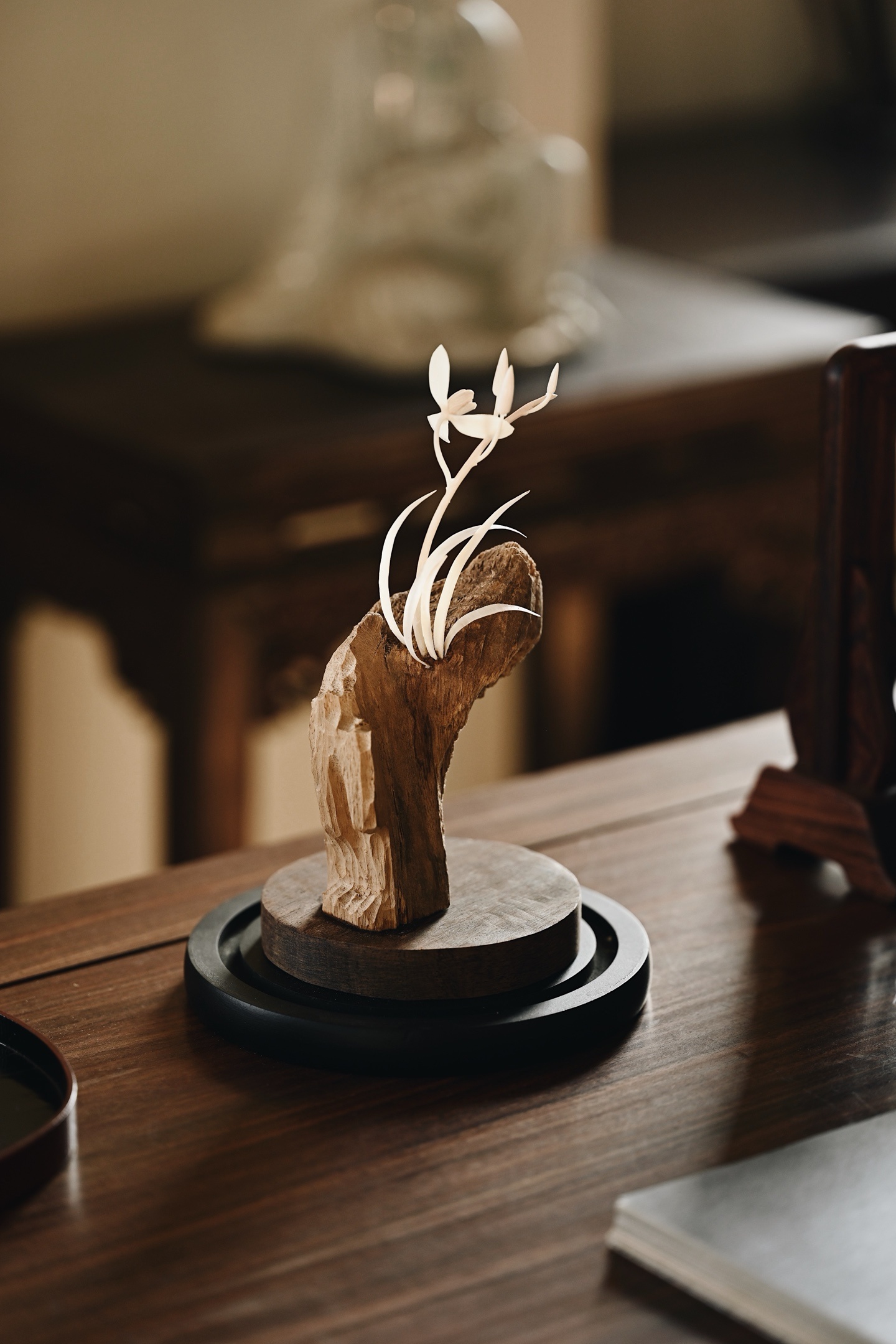 沉香×猛犸 | 素兰清风 小摆件料质温润细腻,嵌兰草清泠舒展,空谷幽芬,陈设案头