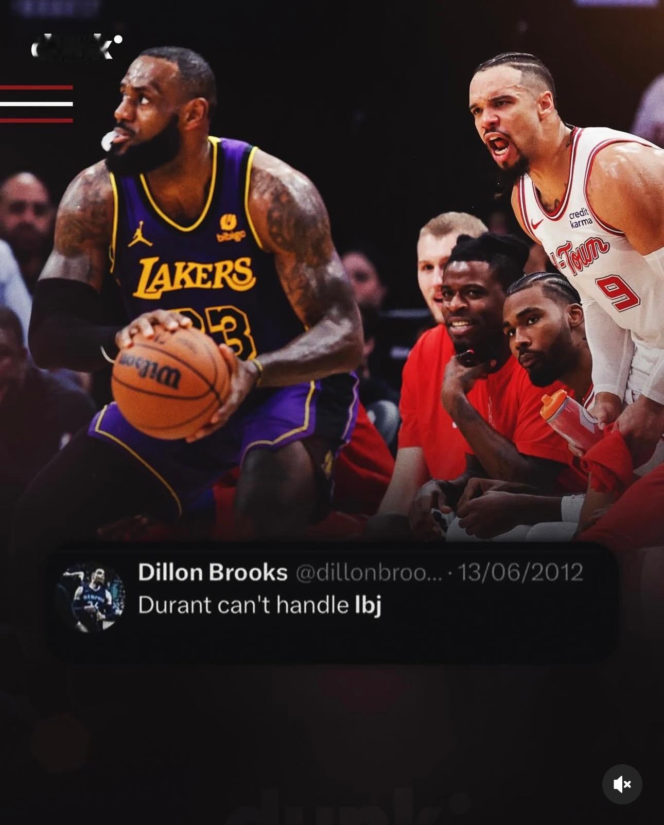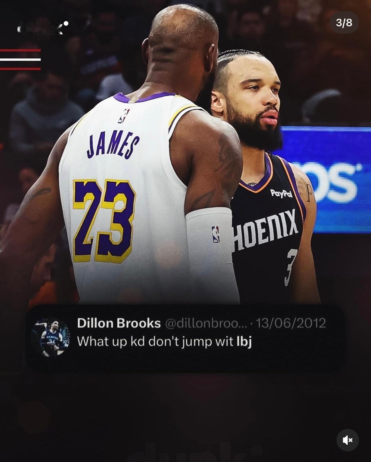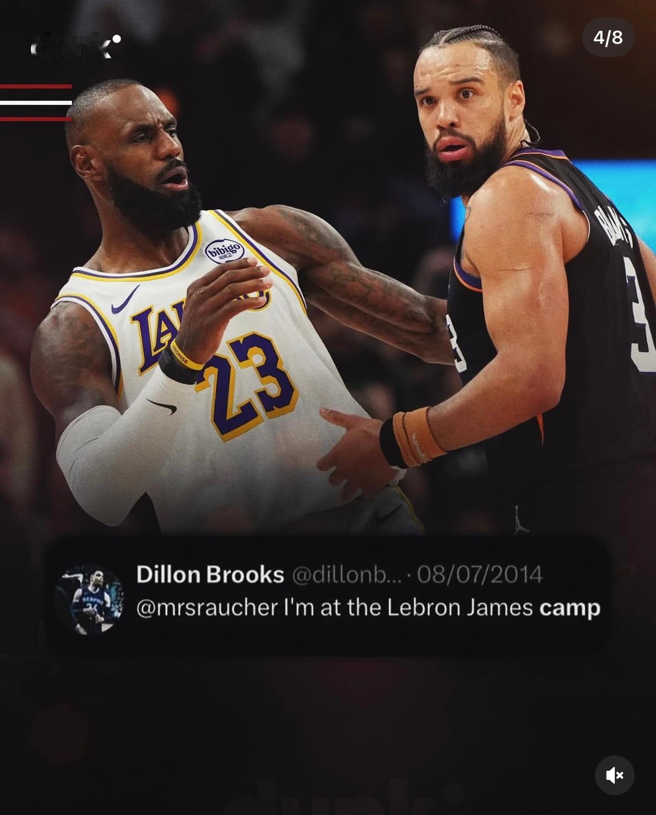 詹姆斯当年在热火效力期间,还在读高中的狄龙·布鲁克斯曾多次发推支持詹姆斯:“杜兰特打不过詹姆斯。”“杜兰特你咋了,别和詹姆斯对着干”“我在勒布朗·詹姆斯的训练营。”“说真的,詹姆斯是NBA最棒的球员。”“勒布朗生气了,该行动了”“早该这样了,冠军詹姆斯。”“9次全明星,3届MVP,1次FMVP,3次最佳防守阵容,5次最佳阵容。说白了,这家伙太厉害了,你懂的。”