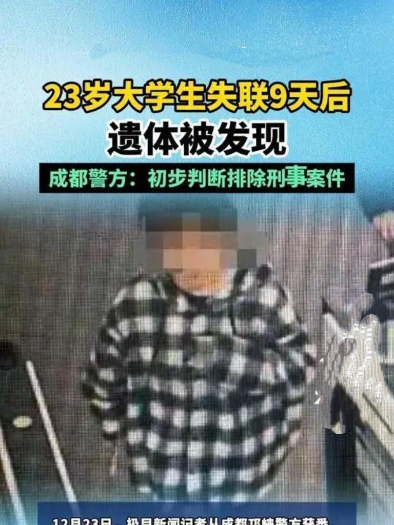 揪心!成都23岁大学生失联9天,最终遗体被发现,生命戛然而止令人痛惜。年轻生命的消逝背后,究竟藏着怎样的隐情?是压力、意外还是其他?大家对此怎么看?快来评论区留言,一起探讨如何避免类似悲剧重演。青少年失联失踪