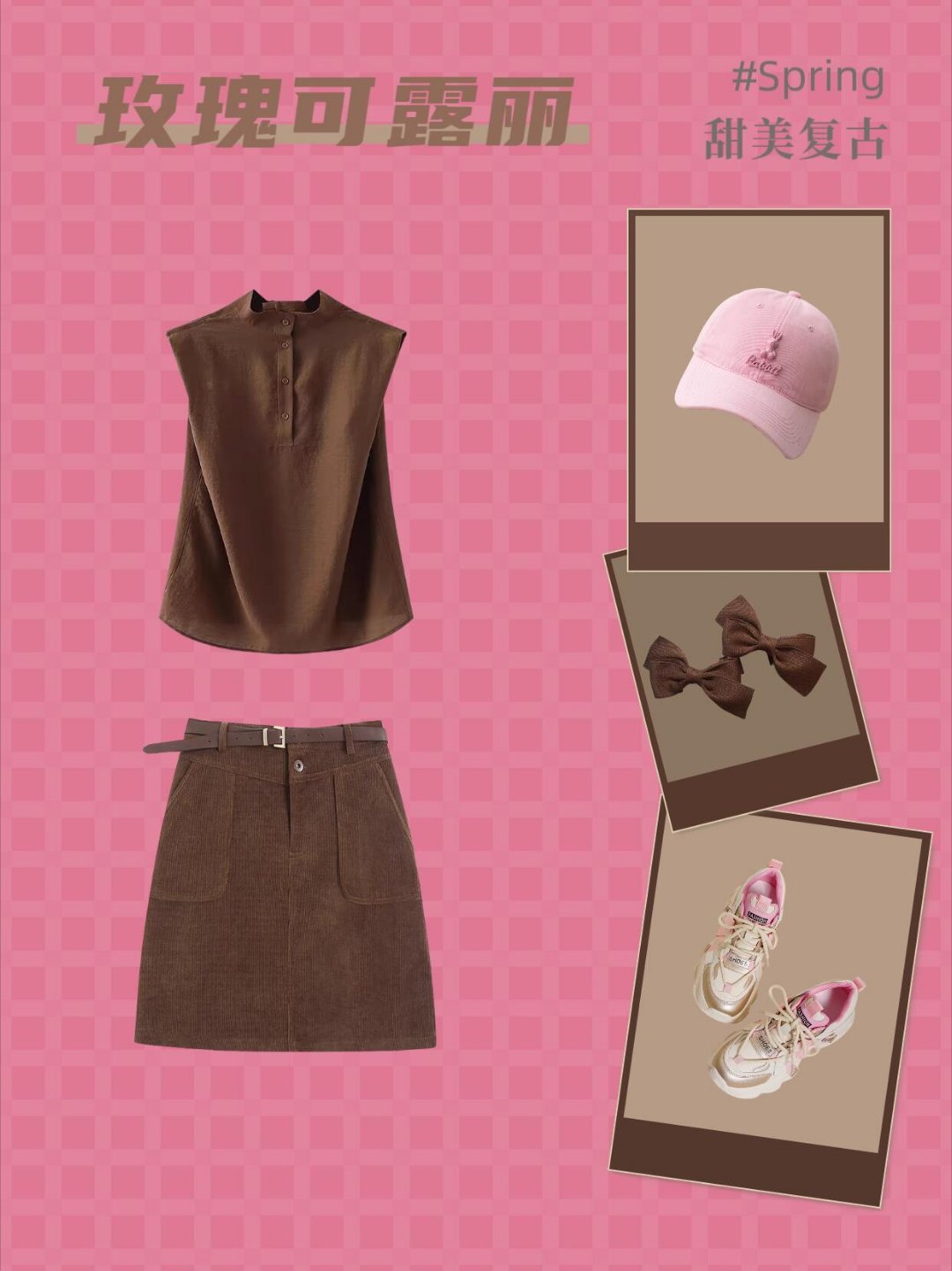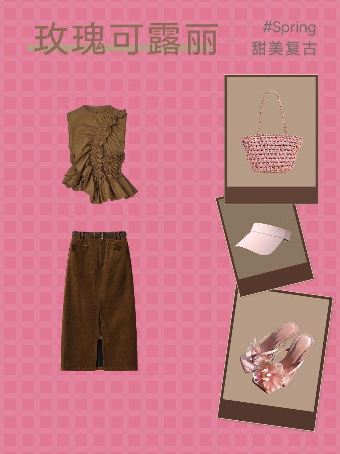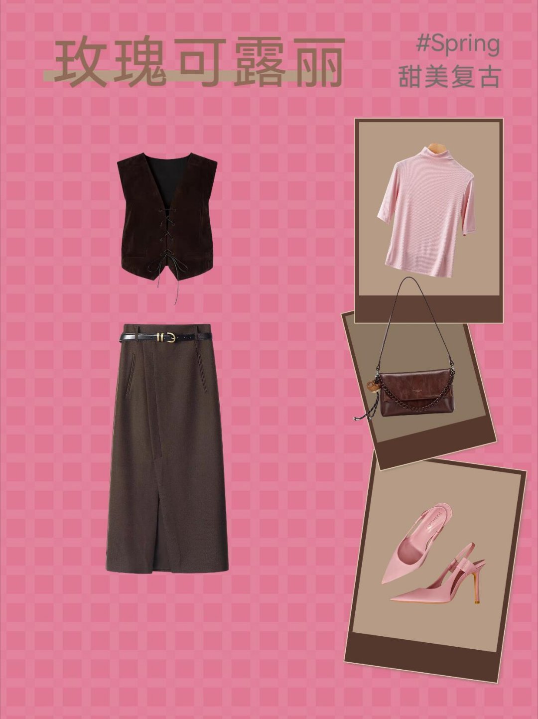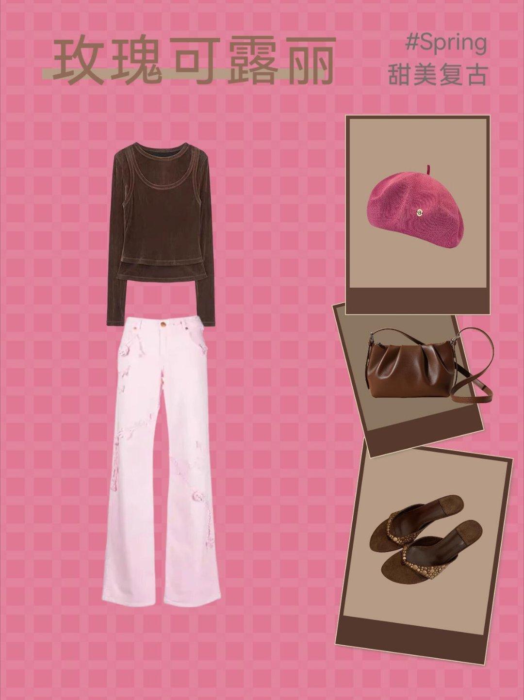 风格大赏可露丽穿搭 可露丽风穿搭,灵感来自法国甜点“可丽露”(Canelé)。外表是深棕色的焦糖硬壳,里面是柔软的奶黄色内芯,外焦里嫩,层次分明。可露丽风穿搭也是这种感觉:用棕色系做“外壳”,搭配低饱和度但明亮的彩色做“内芯”,既有复古感,又有甜美的春日氛围。这种风格流行于2025年春夏,既适合日常通勤,又很有季节感。整体特点是:灵动、温柔、带一点法式复古,但不会显得幼稚或夸张。几个实用的配色公式:一、棕+粉(玫瑰可露丽)这是最甜的一组配色,像加了玫瑰酱的可丽露。棕色负责稳重,粉色负责甜度。适合:约会、逛街、游乐园、咖啡馆拍照。搭配示例:- 焦糖棕针织开衫 + 浅雾粉吊带裙 + 白色长袜 + 玛丽珍鞋- 深咖西装外套 + 灰粉衬衫 + 米色高腰半裙关键词:温柔、软萌、有点小浪漫。二、棕+蓝(盐系可露丽)这组更偏“盐系”,气质克制又优雅,像一杯海盐拿铁。适合:上班、面试、正式一点的场合。搭配示例:- 巧克力棕西装套装 + 雾霾蓝衬衫 + 小白鞋- 咖色风衣 + 浅蓝直筒牛仔裤 + 白T关键词:干净、利落、有一点酷,但不冷漠。三、棕+黄(黄油可露丽)这组是“黄油可露丽”,明亮又松弛,很有阳光感。适合:周末聚会、逛街、音乐节。搭配示例:- 焦糖色针织背心 + 透明黄衬衫 + 高腰牛仔裤- 深棕皮质短裙 + 奶黄短款上衣 + 白色运动鞋关键词:元气、松弛、有一点法式少女感。四、棕+绿(精灵可露丽)这组是“精灵可露丽”,像森林里的小精灵,清新又治愈。适合:公园散步、野餐、郊游、旅行。搭配示例:- 咖色高腰阔腿裤 + 奶绿针织上衣 + 小白鞋- 棕色皮质马甲 + 浅绿色连衣裙 + 帆布包关键词:自然、清爽、很有春天的感觉。配色技巧小总结:可露丽风不是普通的棕+蓝、棕+绿,而是有“外焦里嫩”的对比。- 棕色系:可以是咖啡色、巧克力色、焦糖色、深棕、浅棕,用来做外套、下装、包包、鞋子。- 彩色:粉、蓝、黄、绿要选“轻浅感”的颜色,比如雾红、雾霾蓝、奶绿、透明黄,低饱和度但明亮,不暗沉、不荧光。- 小面积点缀:可以用彩色做内搭、帽子、围巾、发夹、袜子,既显气色又不会太跳。整体风格:上半身或内搭用彩色,下半身或外套用棕色,或者反过来,形成“外壳+内芯”的结构。妆容可以偏自然清透,搭配法式刘海、低马尾或微卷短发,更有可露丽的复古甜美感。可露丽风穿搭的核心,就是:用棕色稳住整体,用柔和明亮的彩色点亮春天。既日常实穿,又有一点小心机,让你在通勤和约会之间自由切换。时尚灵感解读