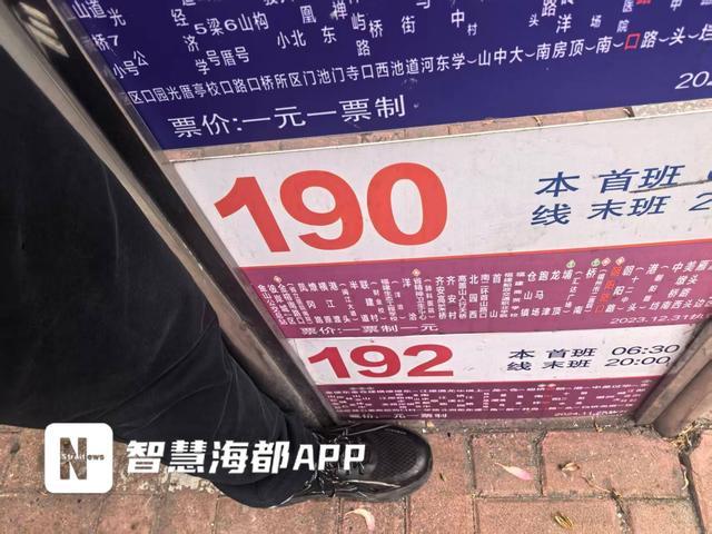 “190路是我有时会搭乘的,这个站的站牌放得特别低,我们老年人眼睛不好,特别是夜间光线昏暗时,几乎要蹲下去才能看清路线。”等车的张大爷告诉记者,“站牌设置对腿脚不利索的人而言十分不便。”