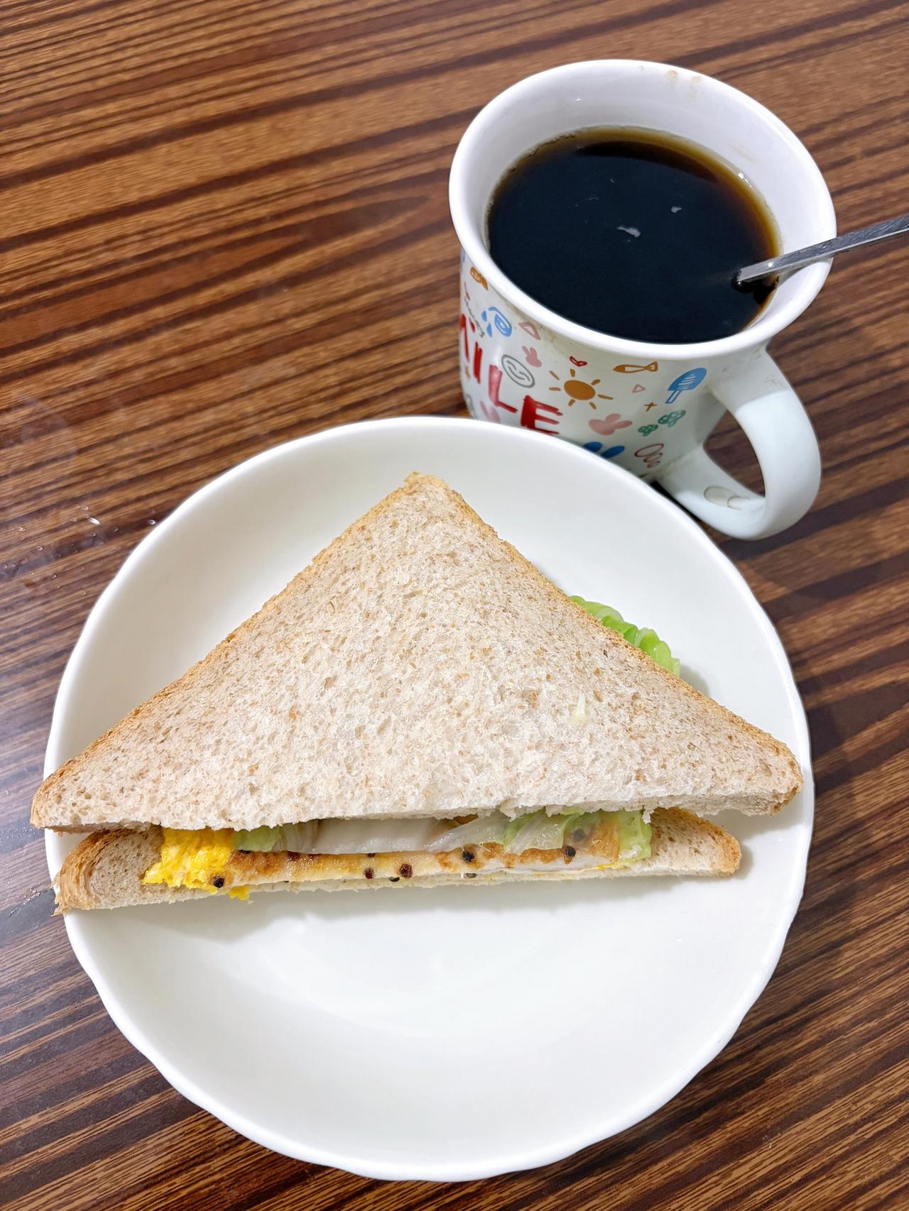 今日体重:106.8斤⬇️0.7斤 今日减脂早餐:三明治(鸡排 鸡蛋 白菜 全麦面包)+黑咖啡
