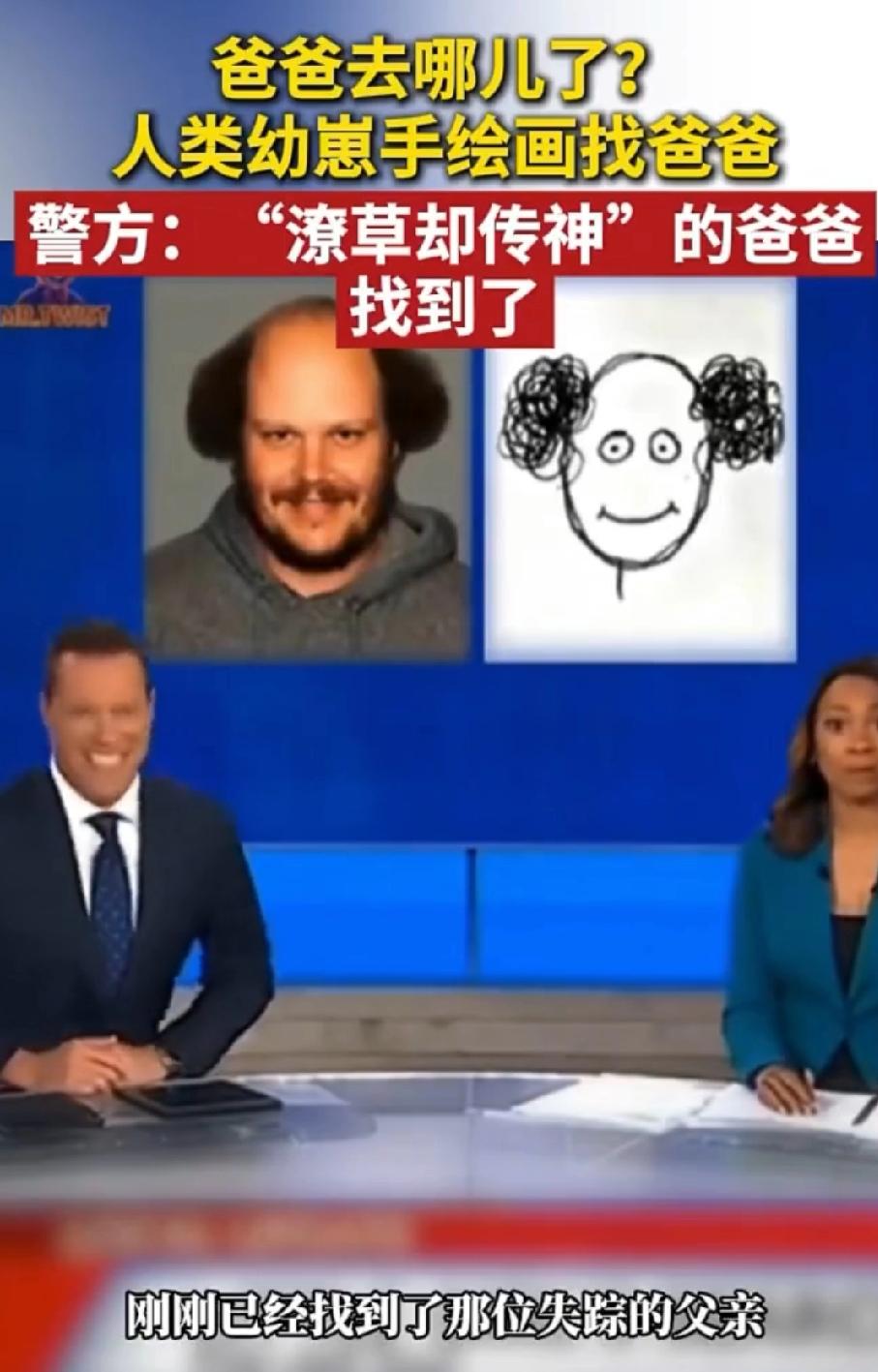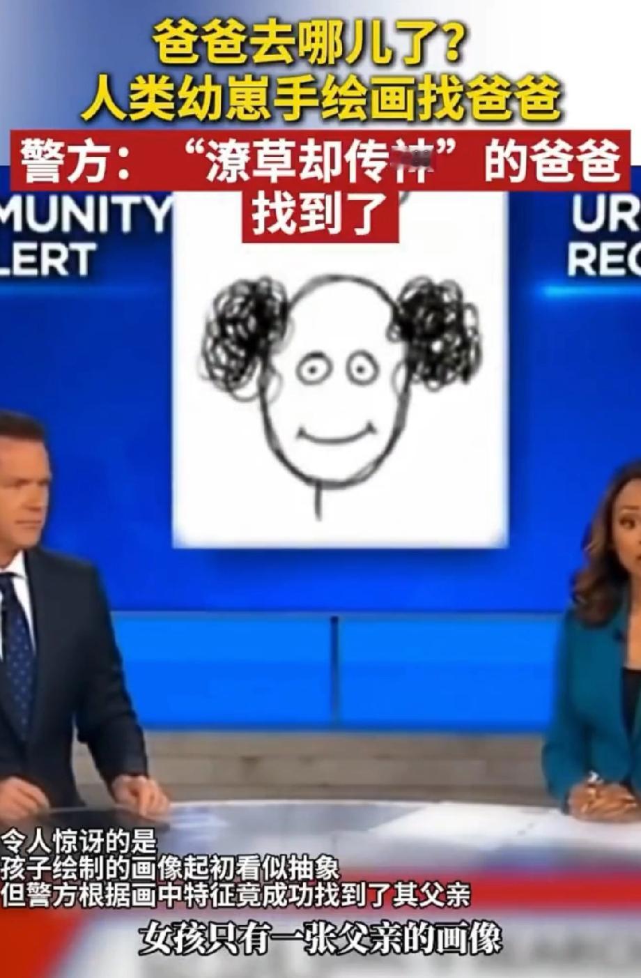外国萌娃用潦草手绘画像找到爸爸! 最近看到外国萌娃用潦草手绘画像找到爸爸的新闻,太有意思了。想象一下,那萌娃小手一挥,画出的画可能线条歪歪扭扭、图案奇奇怪怪,但居然能帮警察锁定爸爸。就像新闻里说的,“潦草却传神”。这让我想起那个小女孩凭抽象画当街认爹,结果被当成骗子的故事。有时候孩子的画虽然不那么符合常规审美,可里面藏着他们对亲人独特的认知。说不定在萌娃心里,几笔简单线条就是爸爸最鲜明的特征。这也告诉我们,不能小看孩子的创造力和观察力,说不定一幅“鬼画符”背后,藏着大秘密呢。