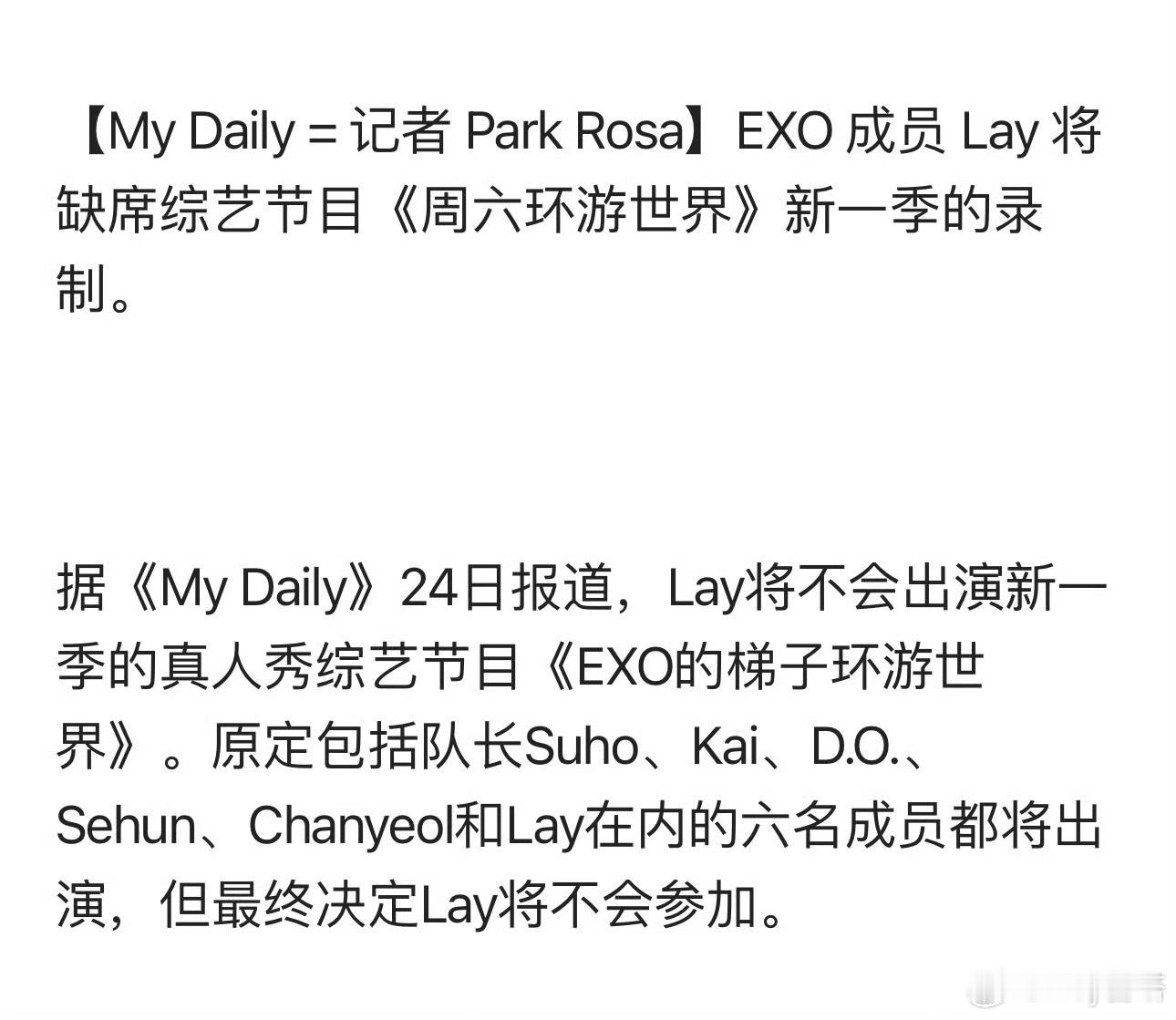 张艺兴将缺席EXO团综张艺兴不参与EXO团综 张艺兴不参与EXO的团综了张艺兴