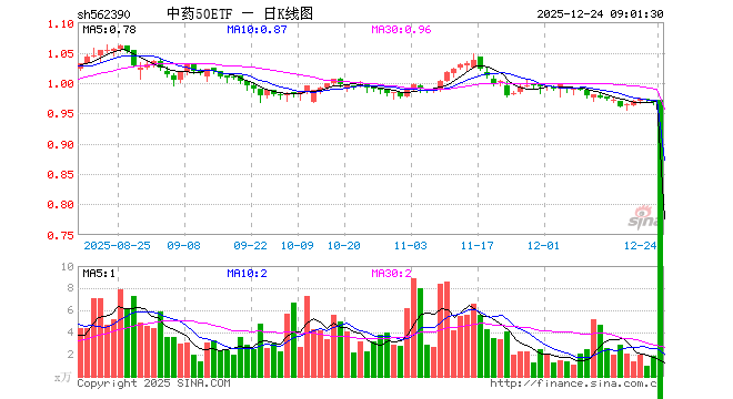 12月23日,中药50ETF(562390)跌0.51%,成交额184.23万元。当日份额增加100.00万份,最新份额为8042.90万份,近20个交易日份额增加200.00万份。最新资产净值计算值为7765.42万元。