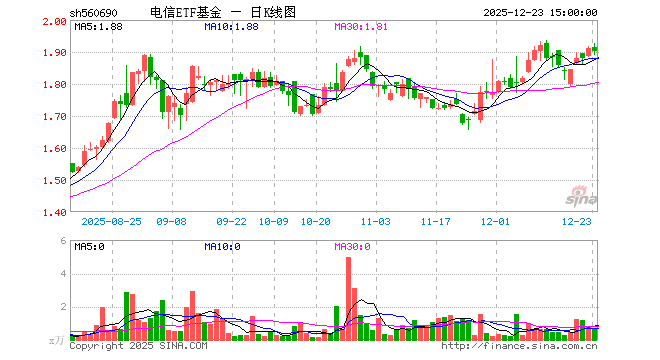 12月23日,电信ETF基金(560690)跌0.58%,成交额135.20万元。当日份额减少75.00万份,最新份额为2113.90万份,近20个交易日份额减少675.00万份。最新资产净值计算值为4023.81万元。