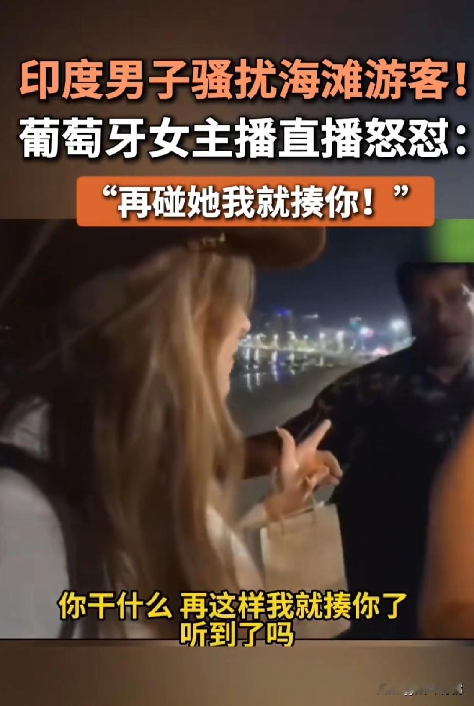葡萄牙女主播在印度游玩, 晚上她和朋友一起去了海边, 并且开启了直播, 以为印度沙滩和国外一样安全, 殊不知两个金发妹已经被印度男人盯上了,正在她们向粉丝介绍印度海滩的时候,一名皮肤黝黑的印度人, 趁着她不注意去触碰她的朋友, 她发现后及时进行了制止, 可那名印度男人就像狗皮膏药一样, 紧挨着她们不放, 葡萄牙女主播只能大喊, 你为什么碰她? 再碰她我就揍你, 那名印度人听后不以为然, 还想再靠近葡萄牙女生, 葡萄牙女生做出了攻击的动作, 我才吓退那名印度人, 这场冲突被全球直播, 大家这才看清了印度男人的嘴脸, 就是想上去骚扰葡萄牙美女, 想想印度男人真的太可怕了, 而且他们脸皮特别厚, 连老外都受不了他们, 毕竟印度强奸率居高不下, 公共场所都敢下手, 这让其他国家的女性旅客, 更不敢去印度旅行了! 大家对于葡萄牙女主播在印度海滩的经历怎么看? 提到印度,你就会联想什么呢 印度美女主持人聊聊印度的故事 印度女主播