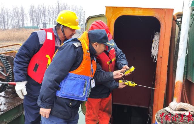 近日,荆州海事局江陵海事处深入辖区危险品锚泊区对到港危化品运输船舶进行登船检查,重点查看船舶法定证书、航行日志、体系文件、装载手册等文书资料;查看船舶消防设施、救生设备、液货管系密封性、货舱透气系统、泵舱安全状况、人员防护装备、液位报警系统及系泊设备的配备与维护保养等情况,同时对船员进入密闭舱室作业程序、测氧测爆设备实操能力、装卸作业安全规程落实等关键履职环节进行现场核验。