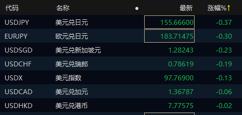 上证报中国证券网讯12月24日亚市交易时段,非美货币汇率多数上涨。北京时间9时51分,美元指数下跌0.13%,美元兑日元、美元兑新加坡元、美元兑瑞郎、美元兑加元等均小幅下跌。