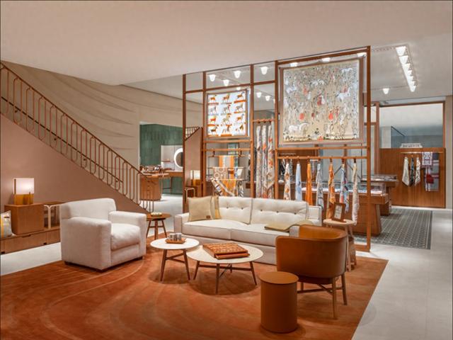 该店于2018年首次开业,此次焕新由巴黎建筑事务所RDAI设计,通过双层挑高玻璃立面与内部艺术装置,巧妙呼应本地文化与传统工艺。一层涵盖女性丝织品、时尚配饰、香水美妆及家居系列,二层则呈现女士成衣、鞋履、皮具、马术系列及珠宝腕表。手工镶嵌地毯、矿物粉彩装饰及艺术藏品点缀其间,呼应品牌对工艺与细节的追求。艺术陈列精选自埃米尔·爱马仕珍藏馆与当代摄影收藏,包括法国艺术家致敬马术传统的画作与摄影作品,为空间注入人文活力。