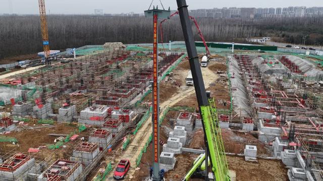在庐阳区大气路与雷水路交口西北角,深空科学城一期I标段建设正全力推进。放眼望去,工人身影忙碌,机械运转不息,一派热火朝天的施工景象。合肥未来大科学城建设投资有限公司项目负责人徐振睿介绍,本项目钢结构主次结构重量约为4000吨,其中钢结构钢柱总数127根,檐口最大高度达33米,屋面桁架最大跨度为44米,构件重、跨度大,起吊高度高成为本项目钢结构施工的重难点。整体项目预计在2027年1月前完工。