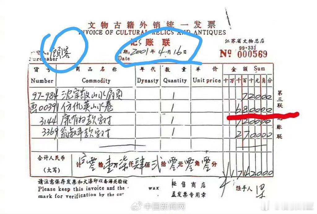 江苏省委省政府对南博开展全面调查 澎湃新闻的这篇文章据说没有了,如果文章里的内容是经过调查的,那么又实锤了里面说的是1999年在陆挺那里看到了《江南春》,他说他花了16万从江苏文物总店买到,而南博拿出江苏文物总店出售这幅画的收据是2001年,价格是6800