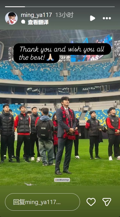 12月18日,成都蓉城官方宣布徐正源离任,昨天,俱乐部官方为徐正源举行送别仪式。杨明洋晒出送别仪式的照片,并配文:谢谢你,祝你一切顺利。
