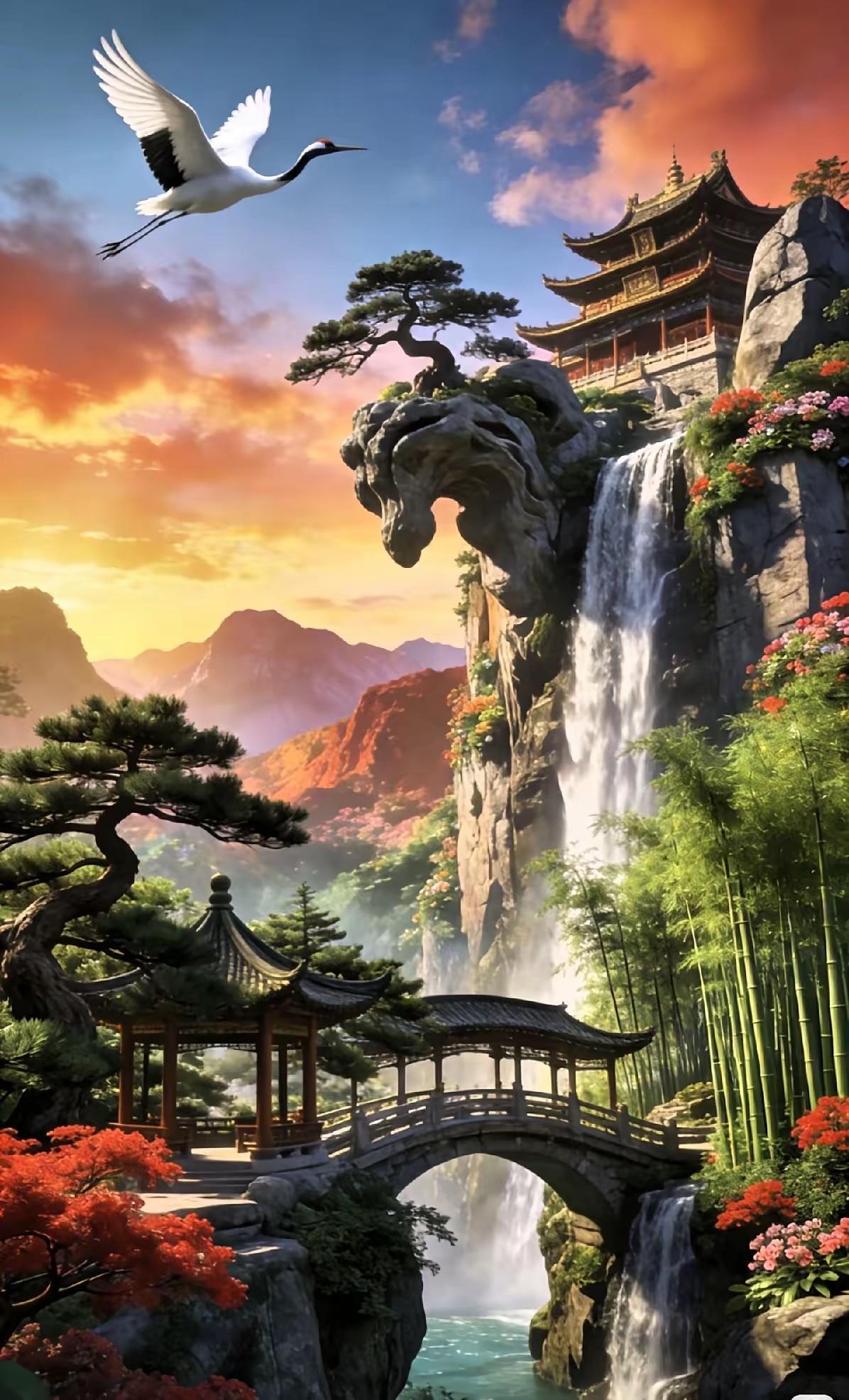 云裁锦字寄长天,谁解奇文藏鹤梦; 雨撒粮田怀百姓,我描美景靓松图。 横批:《鹤梦与松图》