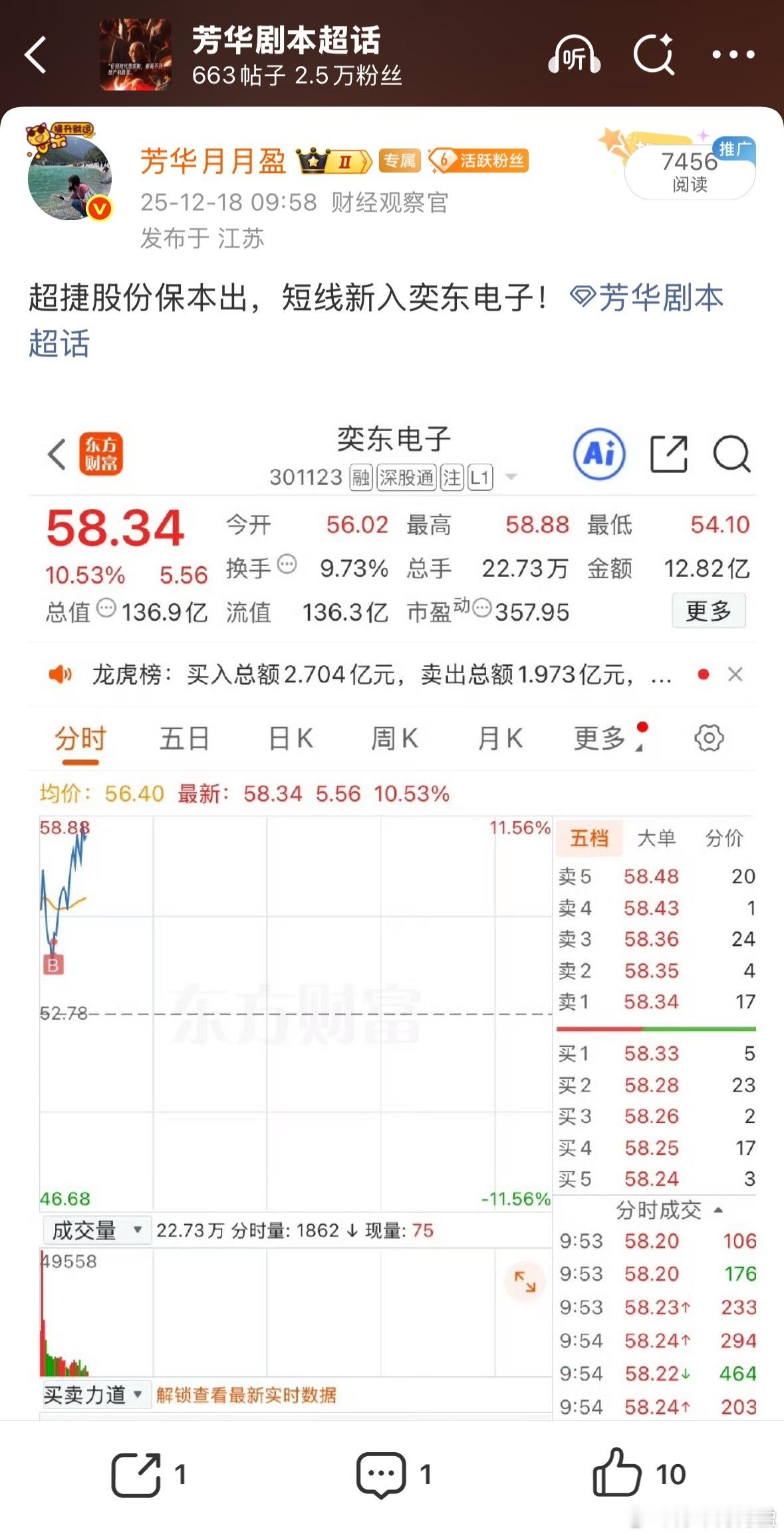 最近芳华操作方向选对了,机会实在太多,上周卖出的超捷股份,早盘又来20CM!芳华剧本