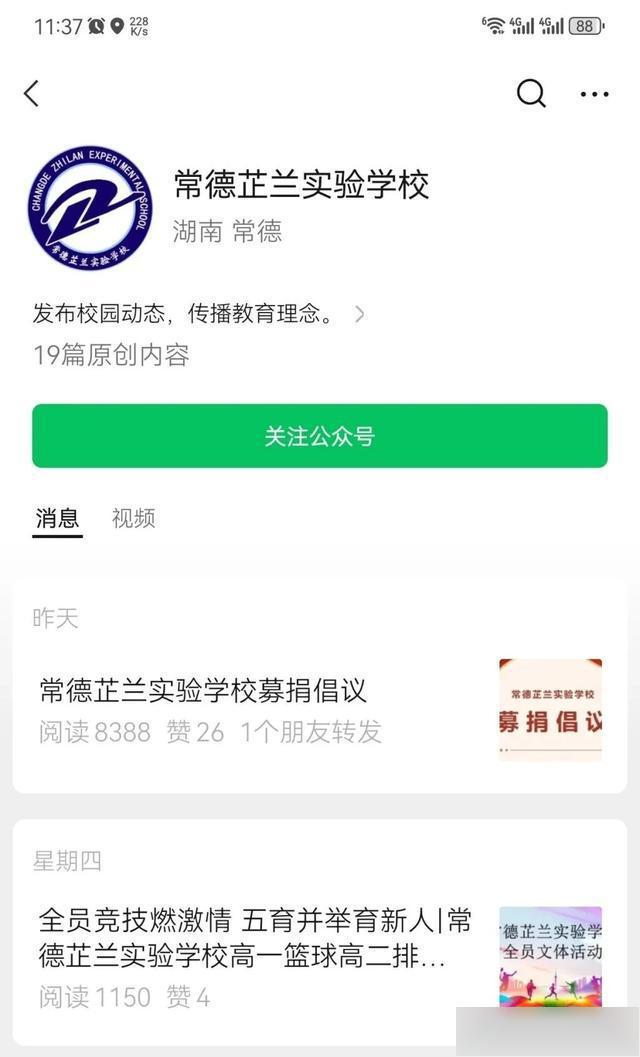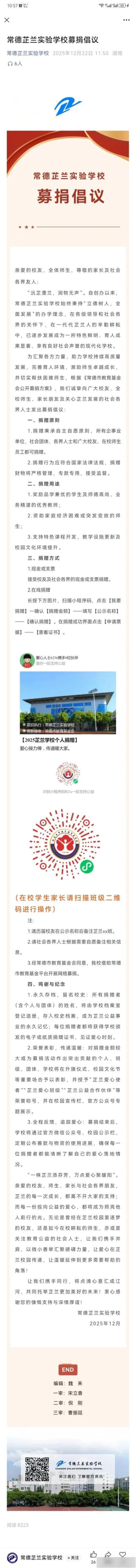 记者查询后看到,常德芷兰实验学校公众号确实于22日发布了捐款倡议。倡议显示,捐款数额并没有要求,已捐的每笔数额也不等,有5元、1元、1000元等。