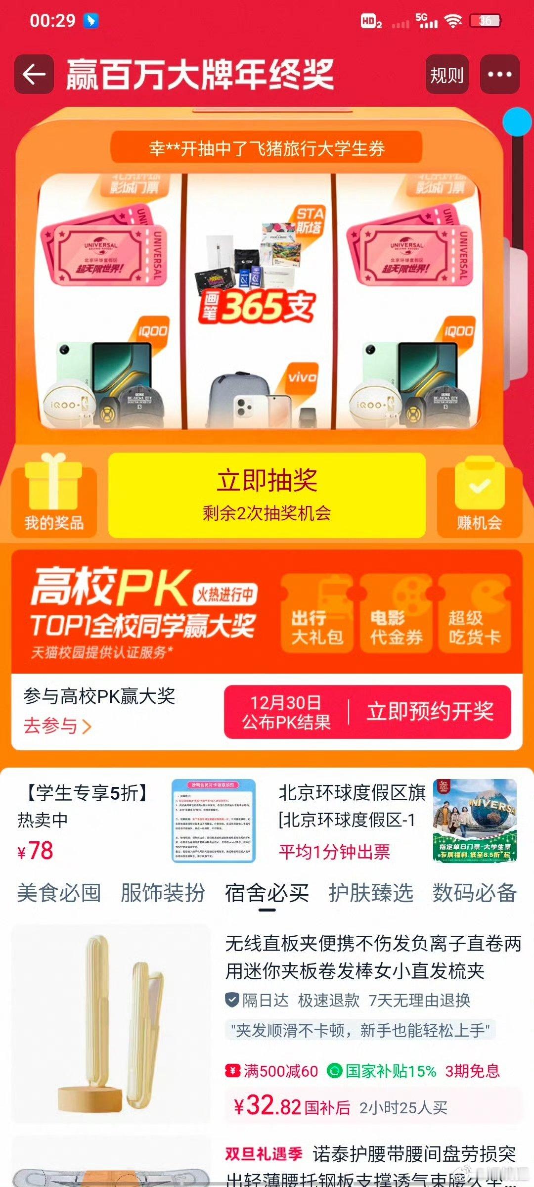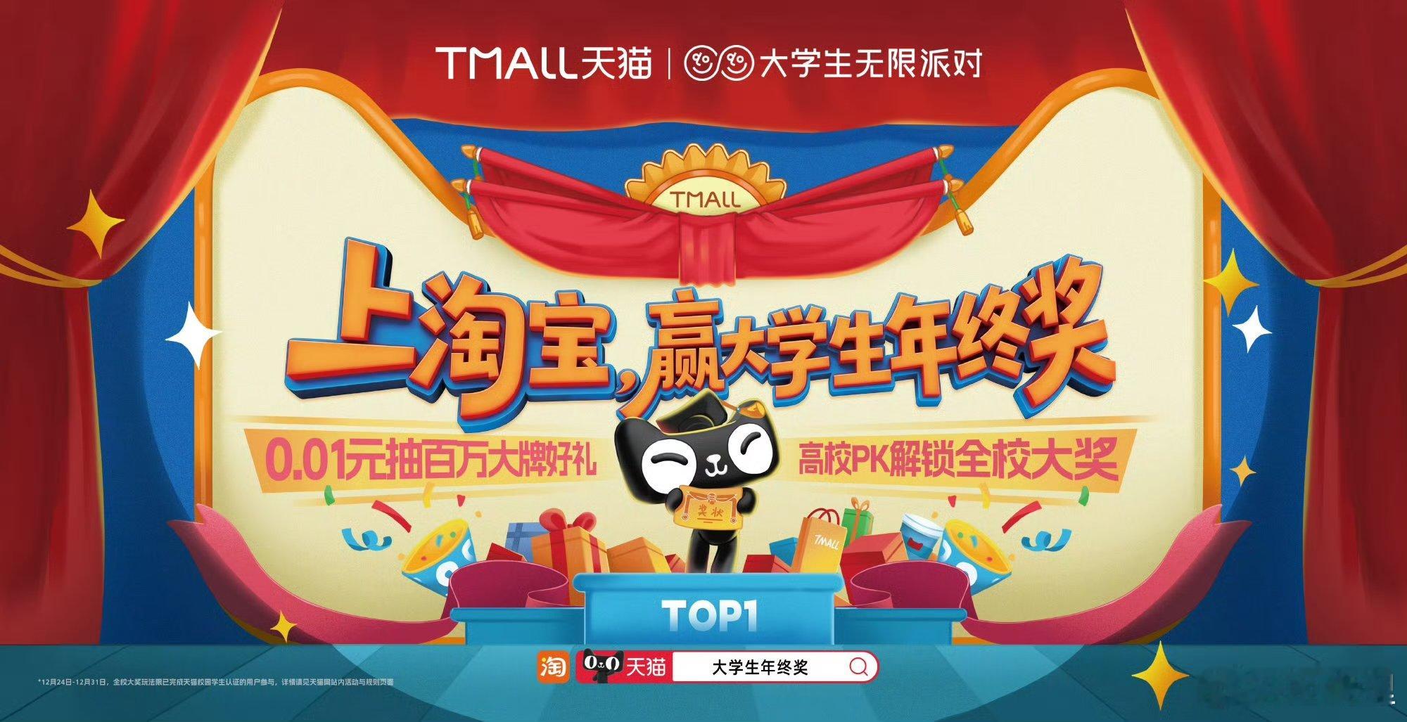 学信网的含金量还在上升 大学生的快乐又来了!天🐱大学生年终奖上线,0.01元抽百万大牌好礼,高校PK还能解锁全校大奖,12月24日-12月31日,上🍑搜【大学生年终奖】,这波福利真的香到爆!上淘宝赢大学生年终奖