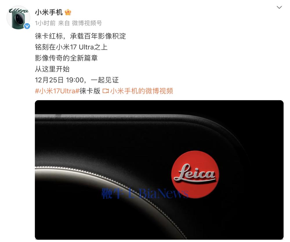 12月24日,小米官方发布小米17Ultra徕卡版最近预热视频。首曝徕卡版背板外观,并确认徕卡红标上机。