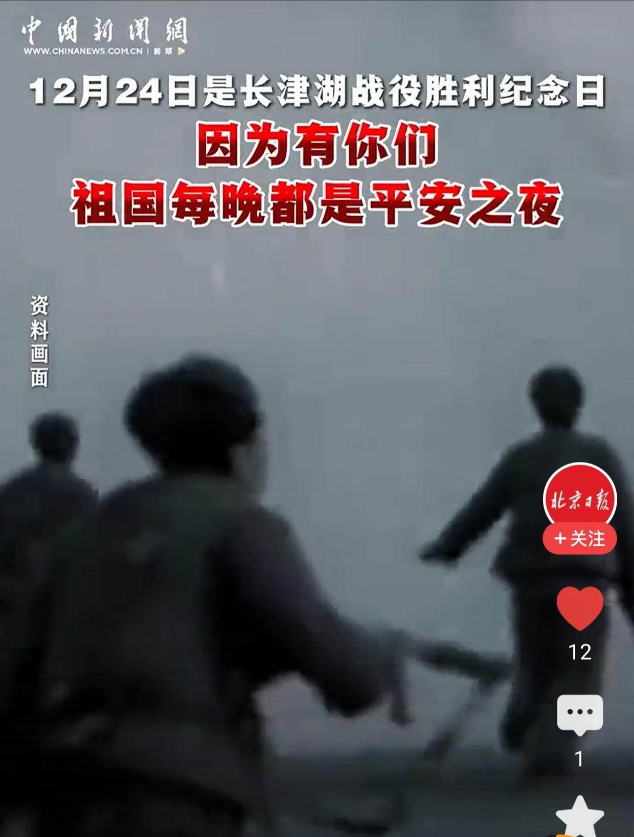 12月24日,抗美援朝第二次战役东线战场告捷之日,即长津湖战役胜利75周年纪念日。同时,今年也是中国人民志愿军出国作战75周年。75年前的那个冬天,在朝鲜半岛零下三四十度的严寒中,中国人民志愿军不怕牺牲,顽强作战,歼敌36000人(其中美军24000人),重创美军王牌陆战1师,全歼美军“北极熊团”团级战斗队并缴获其团旗。此次战役,志愿军将美军反推回三八线,扭转了朝鲜战局,让那个只会吹牛的麦克阿瑟的“圣诞节结束战争”言论成为一个笑话。什么“平安夜”、“圣诞节”,去他的吧,这个月的24日是无数志愿军先烈为我们打出来的平安夜。他们用自己的血肉之躯将战争威胁挡在了国门之外,自己却再也没能回来。抗美援朝一战打出了七十多年的和平,因为有他们,祖国每晚都是平安之夜!致敬最可爱的人!