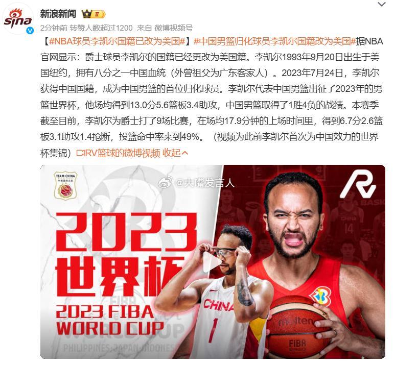 NBA球员李凯尔国籍已改为美国 不意外,归化入中国籍的足球篮球几名运动员,一地鸡毛要说人生赢家,还是在中国是中国国籍、在美国是美国国籍的那位飞人,牛X极了中国足协归化的,高拉特早已宣布放弃中国国籍,好像有一个萧涛涛也放弃了;另几个归化的艾克森、阿兰、洛国富,已经退役。李可、蒋光太等人还是中国国籍。李凯尔改回美国国籍也不意外。NBA球员李凯尔国籍已改为美国,热点观点