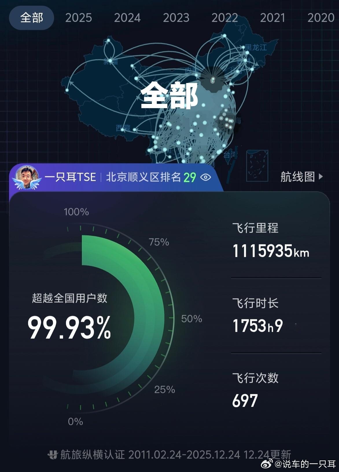 快到年底了,估计又快开始晒今年的飞行记录了。那,我开个场吧:比去年环比增长大概十个往返;截止目前,我的飞行旅程已有697次,有望,或者说肯定在今年结束前突破700次,因为我现在就在往机场的车上。总排名方面,在我们大顺义,我排29;年度排名方面,在我们大顺义,我排10。我的常飞航线也从常年“霸榜”的北京-上海换成了北京-杭州。“我好奇我们大顺义的前9名是谁……” 杭州