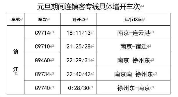 其中镇江站增开2.5对,主要是往南京、徐州、宿迁、连云港方向的列车;镇江南站增开4.5对,主要是往西安、南京、上海、徐州、蚌埠方向的列车。